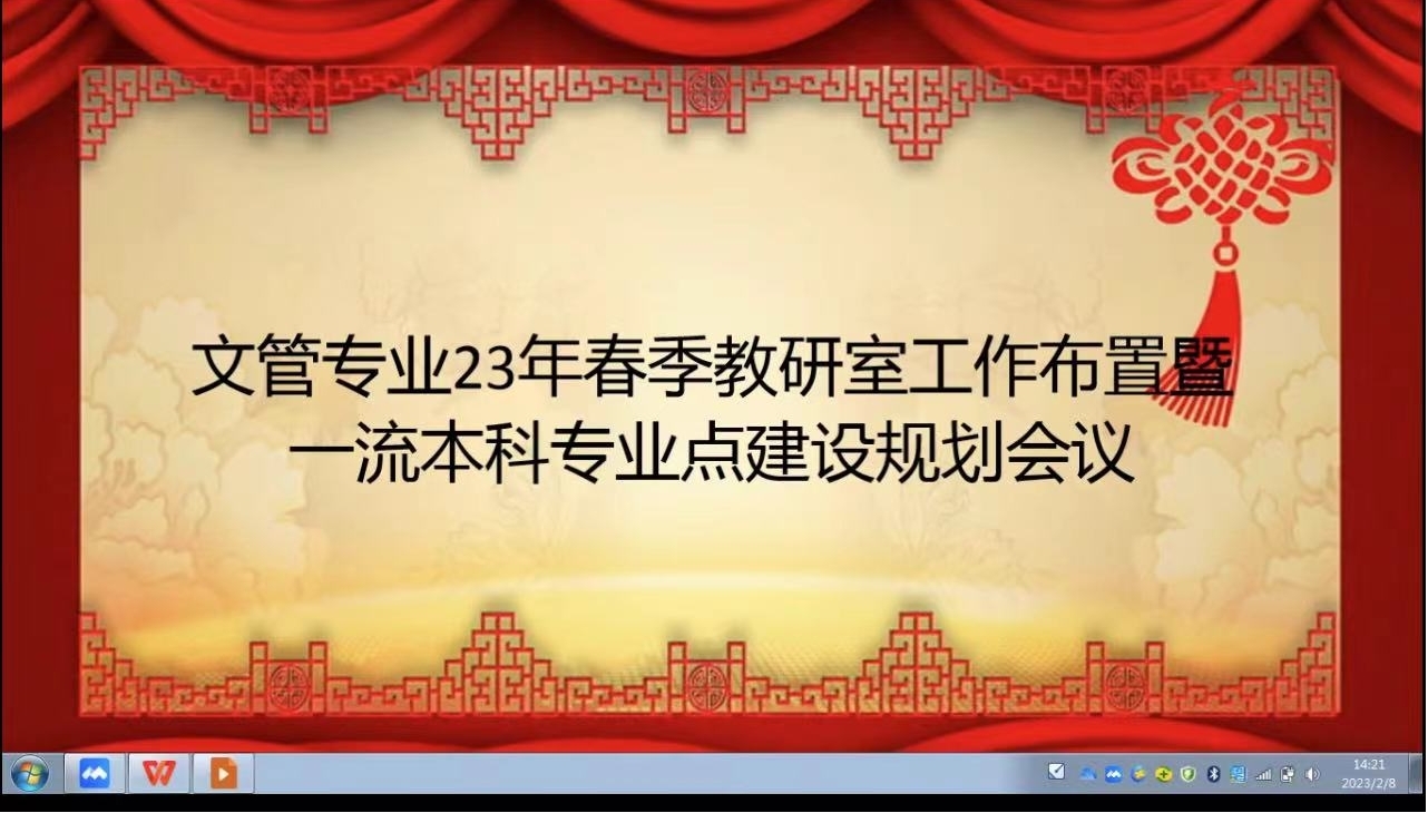 2月8日,文化产业管理专业召开了2023年春季教研室工作布置暨一流本科专业点建设规划会议教研室线上会议,教研室主任王传奇主持,教研室全体成员参加了本次会议。