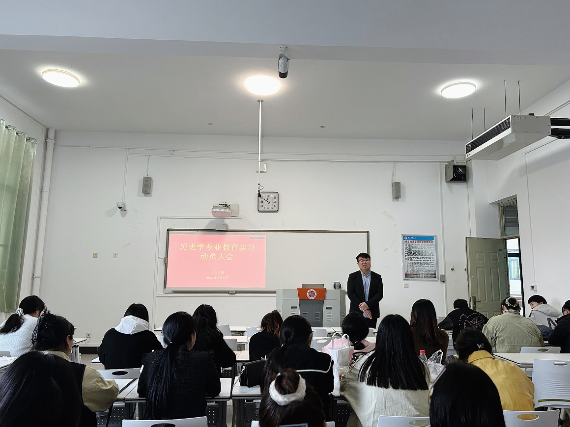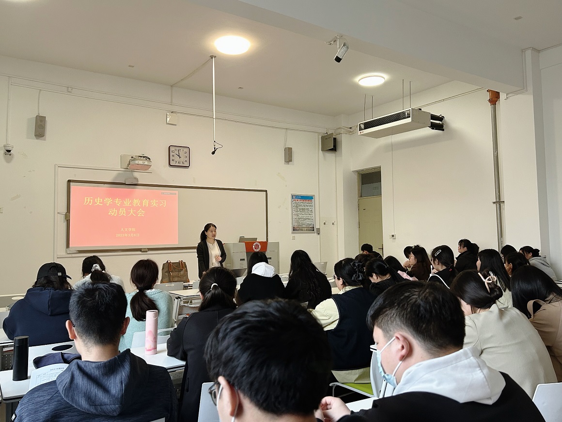 2023年3月6日,国产欧美一区二区历史学专业教育实习动员大会在行方楼109教室如期举行。本次动员大会由历史系主任薛立芳主持,于志刚老师出席会议,国产欧美一区二区19级历史专业全体学生参加。