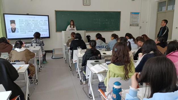 韩老师提前在教学平台布置讨论题目,鼓励学生主动预习《清初诗文的繁荣》部分的相关内容,查阅相关资料,了解本节课的重点、难点。课上,韩老师引导学生一起回顾了中国古代诗歌的发展脉络,引入本课内容,向同学们介绍清代前中期的社会背景,提出相关问题,师生交流互动;以遗民诗人中著名诗人傅山、顾炎武和屈大均及其作品为主要讨论内容,学生进行小组汇报展示,随后韩老师进行补充,成功将数位诗人的形象展示在学生眼前;强调了遗民诗人对明代诗风的因革、傅山的创新意识、顾炎武对杜甫诗歌的继承发展、屈大均诗歌的多元风格等,课堂气氛轻松活跃,学生参与度高,圆满完成教学任务。
