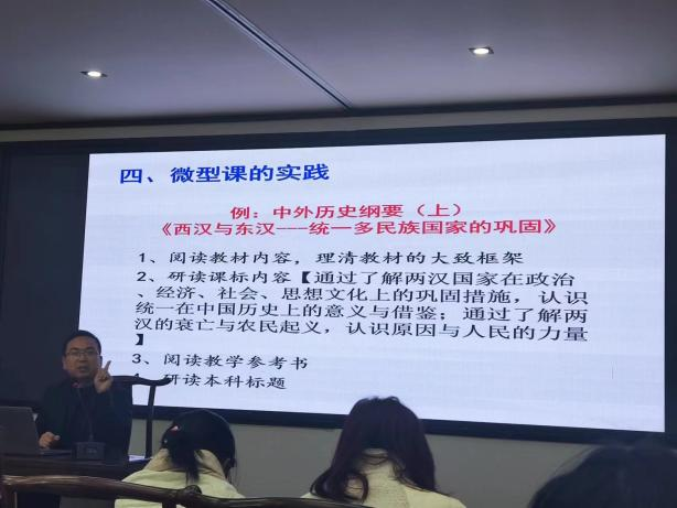 为推动我院历史学师范生培养工作的开展,提高同学们的师范生技能,我院于3月7日上午9点在汉梁楼国学堂开展了中学历史“互联网+”师范生成长工作坊微型课讲座。此次讲座由魏清彩老师主持,商丘市基础教育发展中心的高永老师主讲,国产欧美一区二区历史学大三学生全部参加。