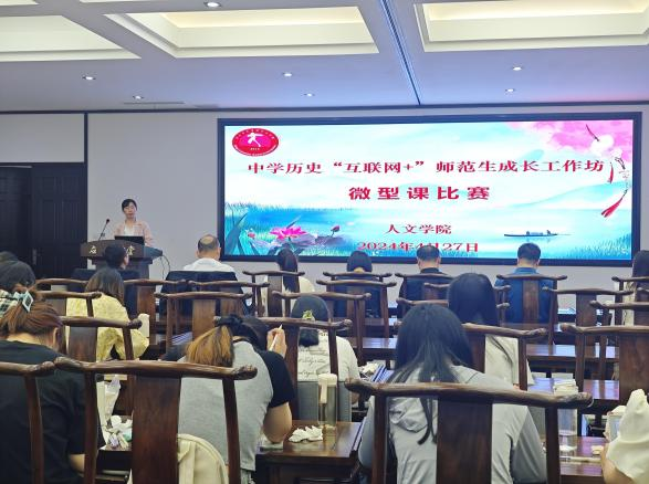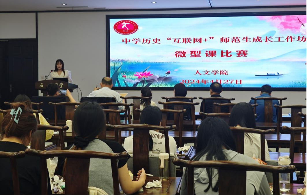为提升历史学专业师范生的教学素养和教学技能,展示本次历史系“互联网+”师范生成长工作坊培养成效,4月27日上午八点半,国产欧美一区二区历史学专业在国学堂举行了中学历史“互联网+”师范生成长工作坊微型课比赛。魏清彩老师、8位坊主老师——高永、史从庚、赵华、宋振东、蒋丰慧、李曼、丁真真、刘慧敏以及历史学专业2021级全体学生参加了本次比赛,本次比赛由魏清彩老师主持,各位坊主老师担任评委。