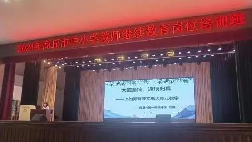 本次讲座由商丘市第一高级中学刘锞老师主讲,题目为《大道至简,返璞归真——谈如何有效实施大单元教学》。在讲座中,刘老师指出,有效实施大单元教学必须做好四个方面的工作:落实指导思想,做好单元设计;整理备课资料,精心做好准备;围绕单元任务,实施语文活动;展示学生成果,总结课堂实施。刘老师强调,大单元教学一定要重视语文核心素养、注重构建语文知识体系,还要使课程内容结构化、创设真实情境并设计好学习活动。