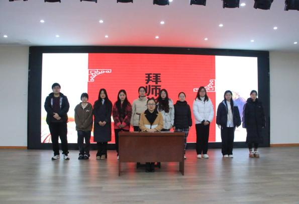接着,坊主代表石晨飞老师和坊员代表唐莉莎同学依次上台发言并作出表态和承诺。工作坊各坊小组长带领本坊成员向坊主行拜师礼并合影留念。