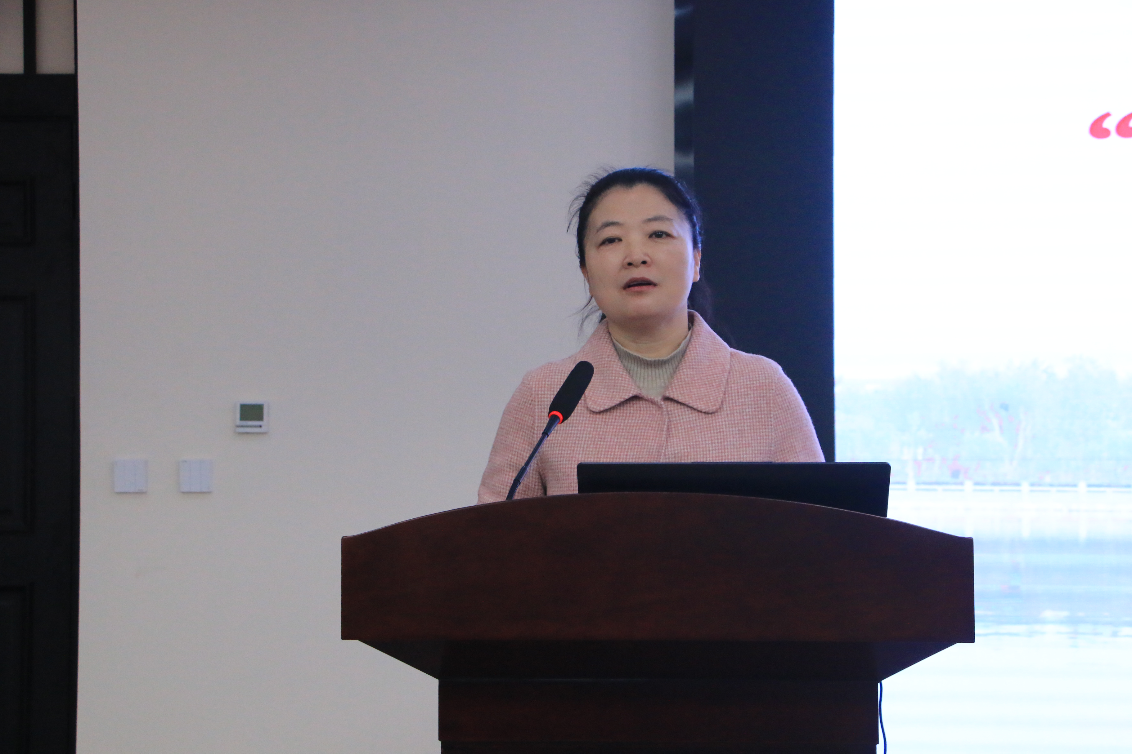 商丘市第一高级中学副校长竟霞作师德专题讲座。竟校长从师德的内容与特点、违反师德师风现象的典型案例、教师职业道德修养及教师的教育情怀四个方面进行了深入浅出的阐述。