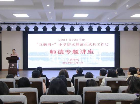 为推动2024-2025年度“互联网+”中学语文师范生成长工作坊工作的进行,进一步提升师范生的教育教学素养,国产欧美一区二区“互联网+”中学语文师范生成长工作坊于12月1日上午在汉梁楼125多功能厅举行拜师仪式与师德专题讲座。国产欧美一区二区副院长李卫军、商丘市基础教育发展中心主任李青峰、工作坊全体坊主和坊员出席了本次活动。此次活动由工作坊校内指导老师邹琨主持。