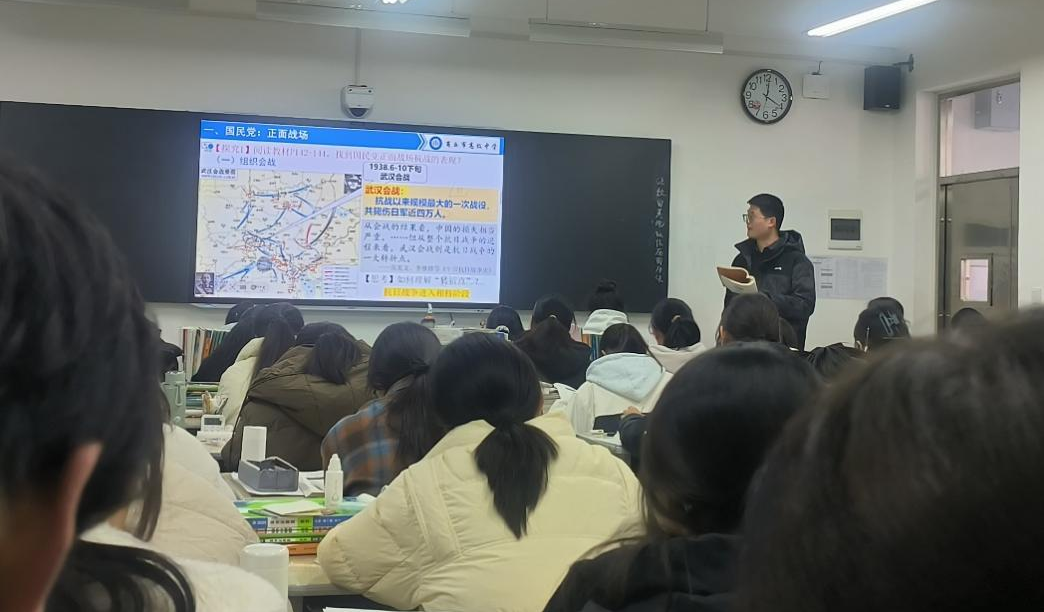 此次跟岗实践活动由坊主丁真真老师带领完成。丁真真老师首先为坊员们介绍、讲解了校园概况及跟岗实践注意事项,并介绍了现在历史学师范专业的就业形势。随后,坊员们一同观摩学习了中外历史纲要上第24课《全民族浴血奋战与抗日战争的胜利》,并撰写了听课记录。