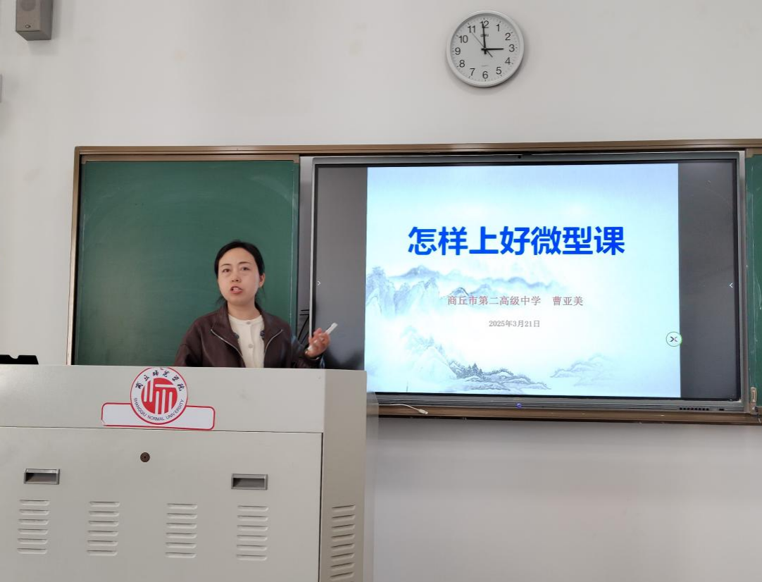 为培养我校历史学专业师范生教学实践技能,把握微型课教学设计主脉络,我院于2025年3月21日下午三点,在行方楼329教室进行了题为“怎样上好微型课”的专题讲座。此次讲座由商丘市第二高级中学曹亚美老师担任主讲。22级历史工作坊全体坊员到场学习。本次活动由魏清彩老师主持。