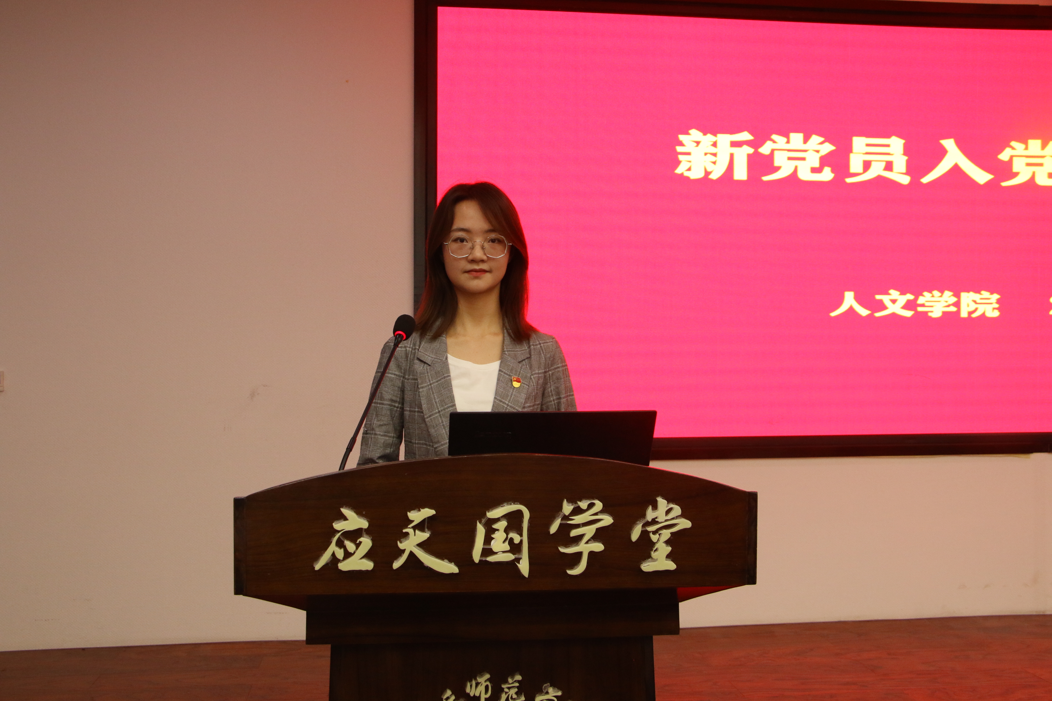 在雄伟激昂的《国际歌》之后,团总支书记李红宣读了新党员名单。全体新老党员面向党旗庄严肃立,在陈晓明书记的领誓下庄严宣誓。接着,曹晨作为新党员代表发言,表达了加入中国共产党员的自豪和荣誉感,以及为共产主义事业奋斗终生的信心和决心。