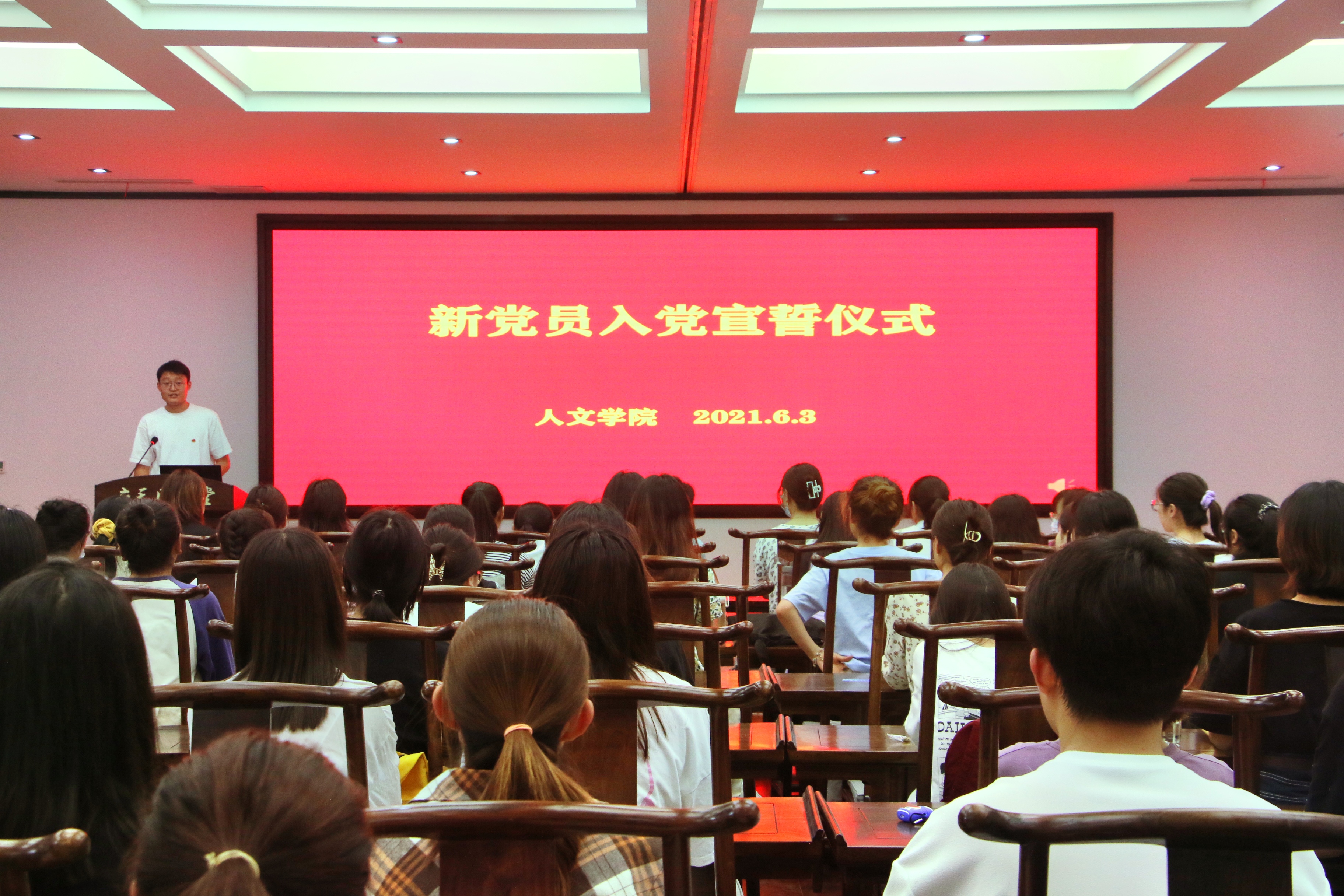 为庆祝中国共产党建党100周年,增强新老党员的党性意识和践行入党誓词。6月3日下午2:00,国产欧美一区二区在梁园校区汉梁楼国学堂举行新党员入党宣誓仪式。学院党委书记陈晓明、团总支书记李红、学工办主任许瀛文、学生各支部书记、新发展党员以及在校学生党员代表共150余人参加了会议。