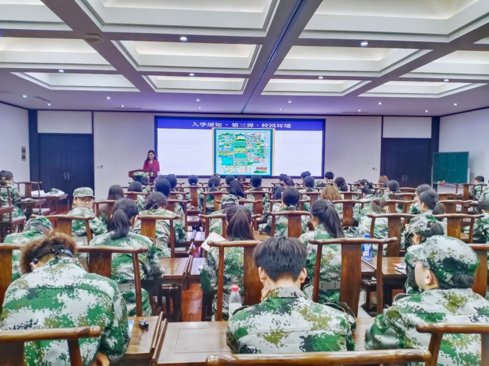 李红老师从6个方面带领大家学习和理解入学须知。一是希望,希望大家学会尊重和礼貌,学会换位思考,学会守规矩,希望大家设定目标,变成更优秀的自己;二是要有界限意识,严守校规校纪,遵守社会公德;三是带领大家熟悉宿舍、教学楼、食堂、澡堂、操场、图书馆等学生经常活动的场所的基本情况;四是从消防、心理、网络和人身安全四个方面提出注意事项,提高同学们的安全防范意识;五是介绍班委设置和职责情况;六是军训期间希望同学们军训期间遵守各项要求,挑战自我。