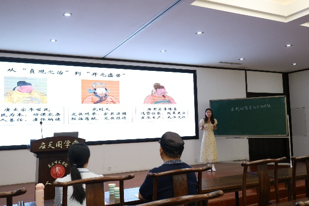 6月21日,历史学专业2021级集中实习成果汇报第一届“乐知”中学历史课程思政微课比赛暨师范生教学技能竞赛选拔在汉梁楼国学堂开展,21级历史学专业全体学生到场,十位指导老师担任评委。