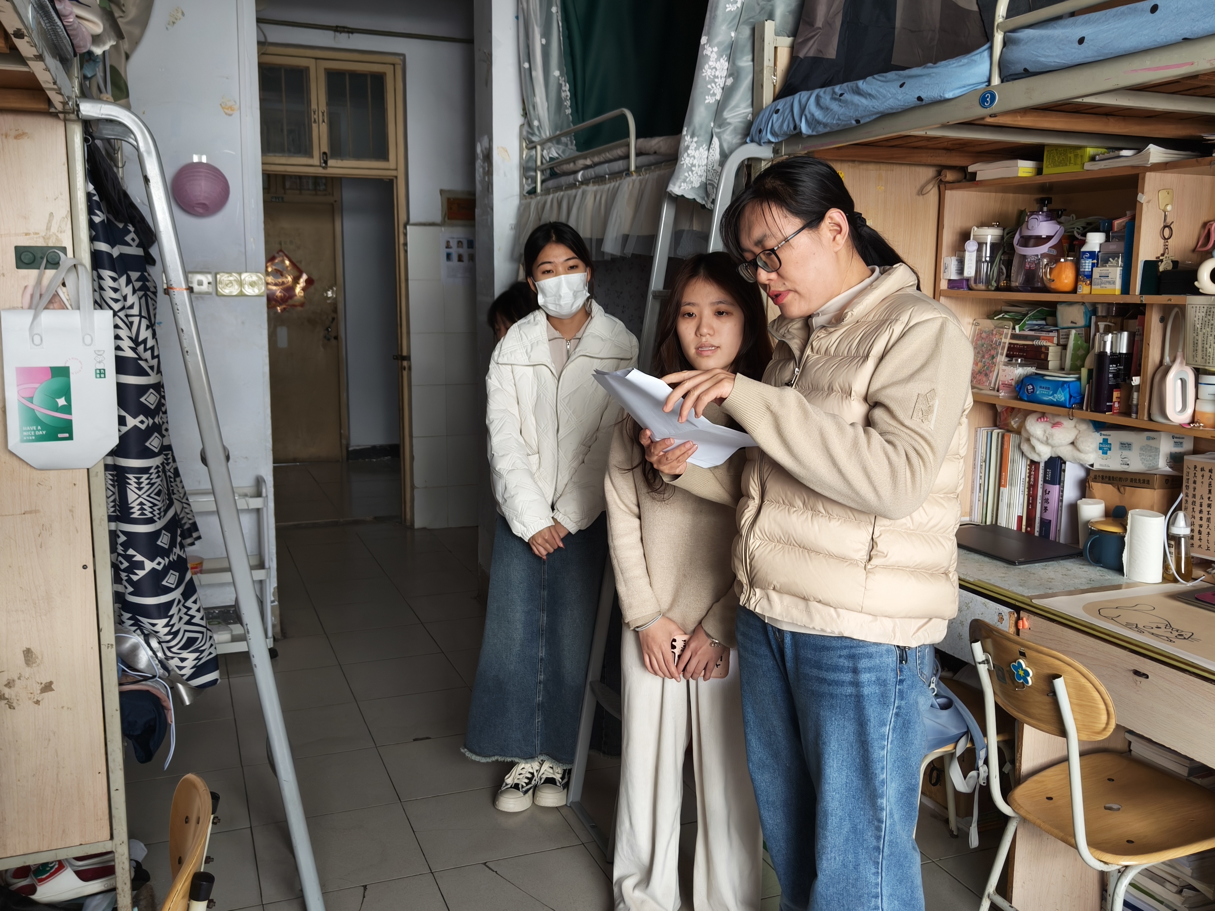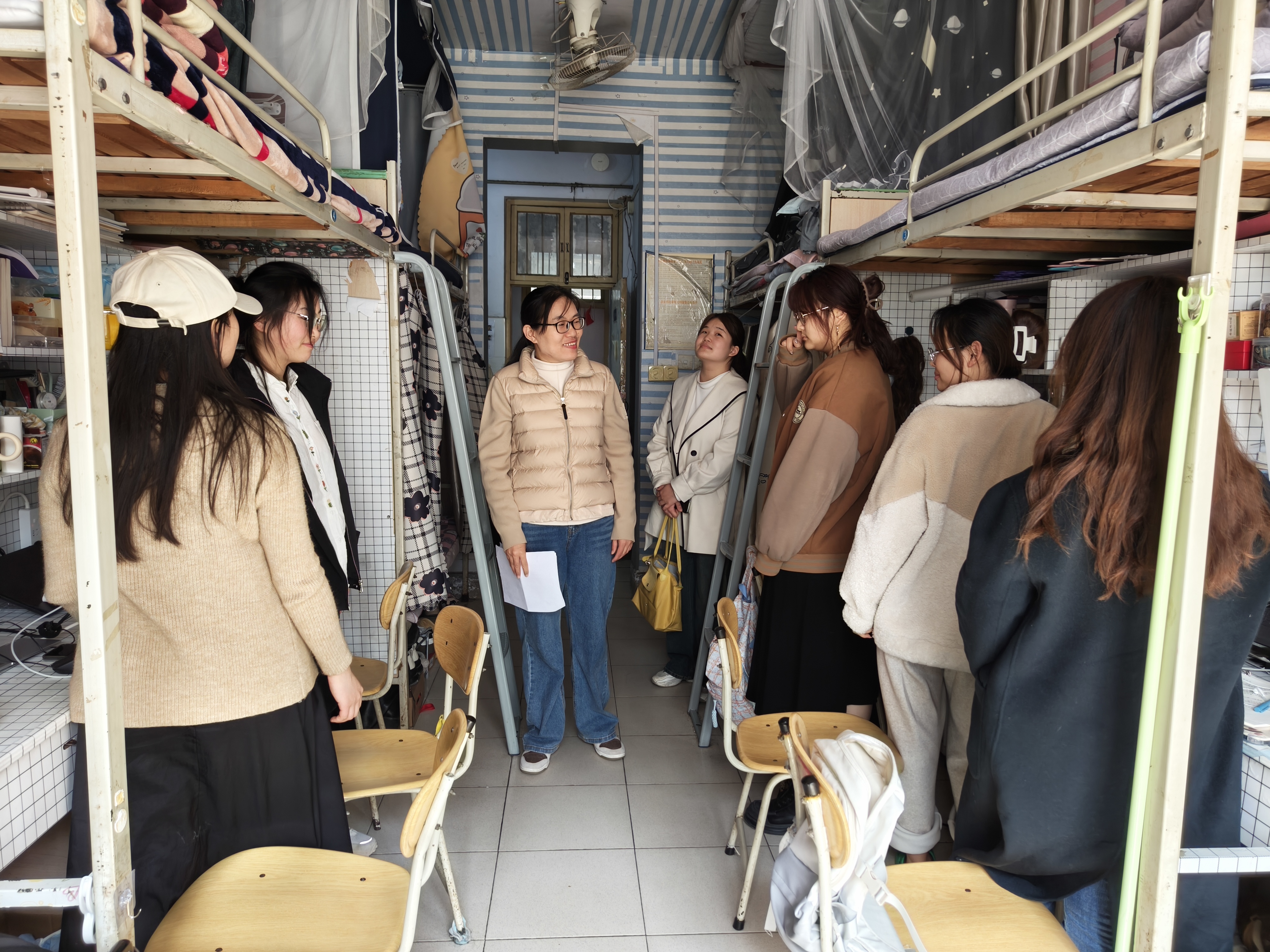 为把“安全文明卫生月”活动落实落细,国产欧美一区二区积极组织辅导员老师深入宿舍进行卫生检查、排查安全隐患并开展谈心谈话活动。3月15日,学工办主任许瀛文老师深入22号楼学生宿舍进行宿舍安全卫生检查,并与学生们进行交流。