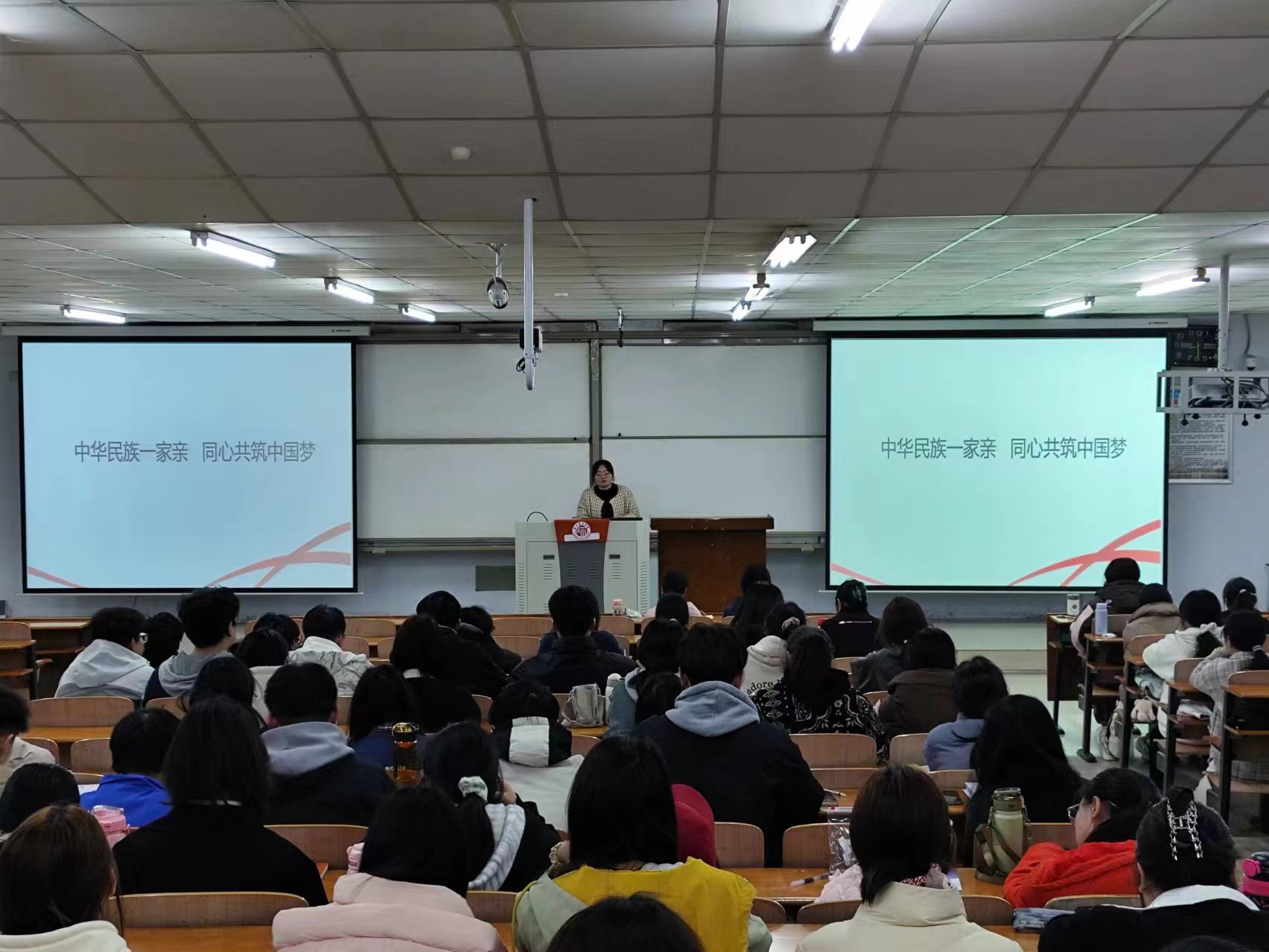 3月18日,乔明老师在智圆楼123教室主持召开“中华民族一家亲、同心共筑中国梦”主题会议。会上,乔老师与学生分享民族团结进步故事、共同了解各民族习俗、文化,切实铸牢中华民族共同体意识。