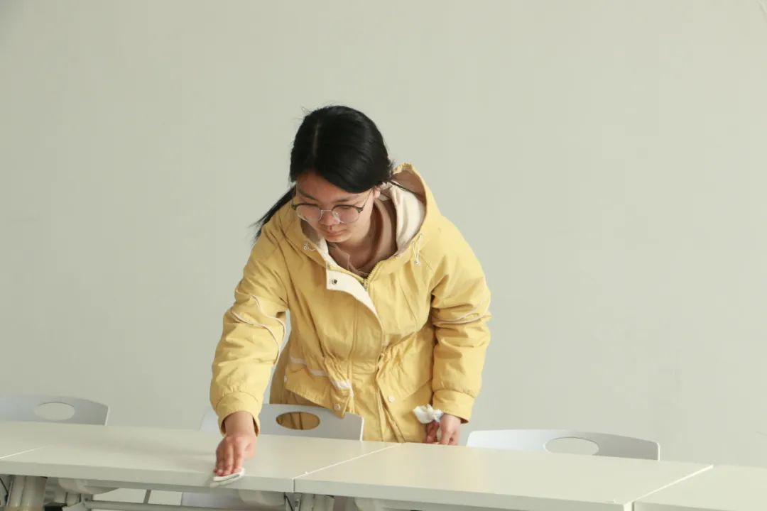 活动中,同学们认真打扫,扫地、摆放桌椅、收拾讲桌、擦黑板和桌椅……分工明确,干劲十足。打扫结束,每个教室变得焕然一新,窗明几净。