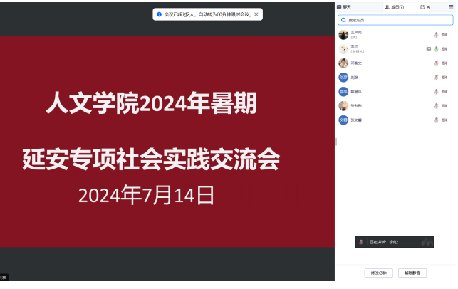 7月14日,指导教师李红在腾讯会议召开了线上“延安专项社会实践交流会”,围绕项目申报、团队分工、实践路线制定等方面对实践队员安排部署。