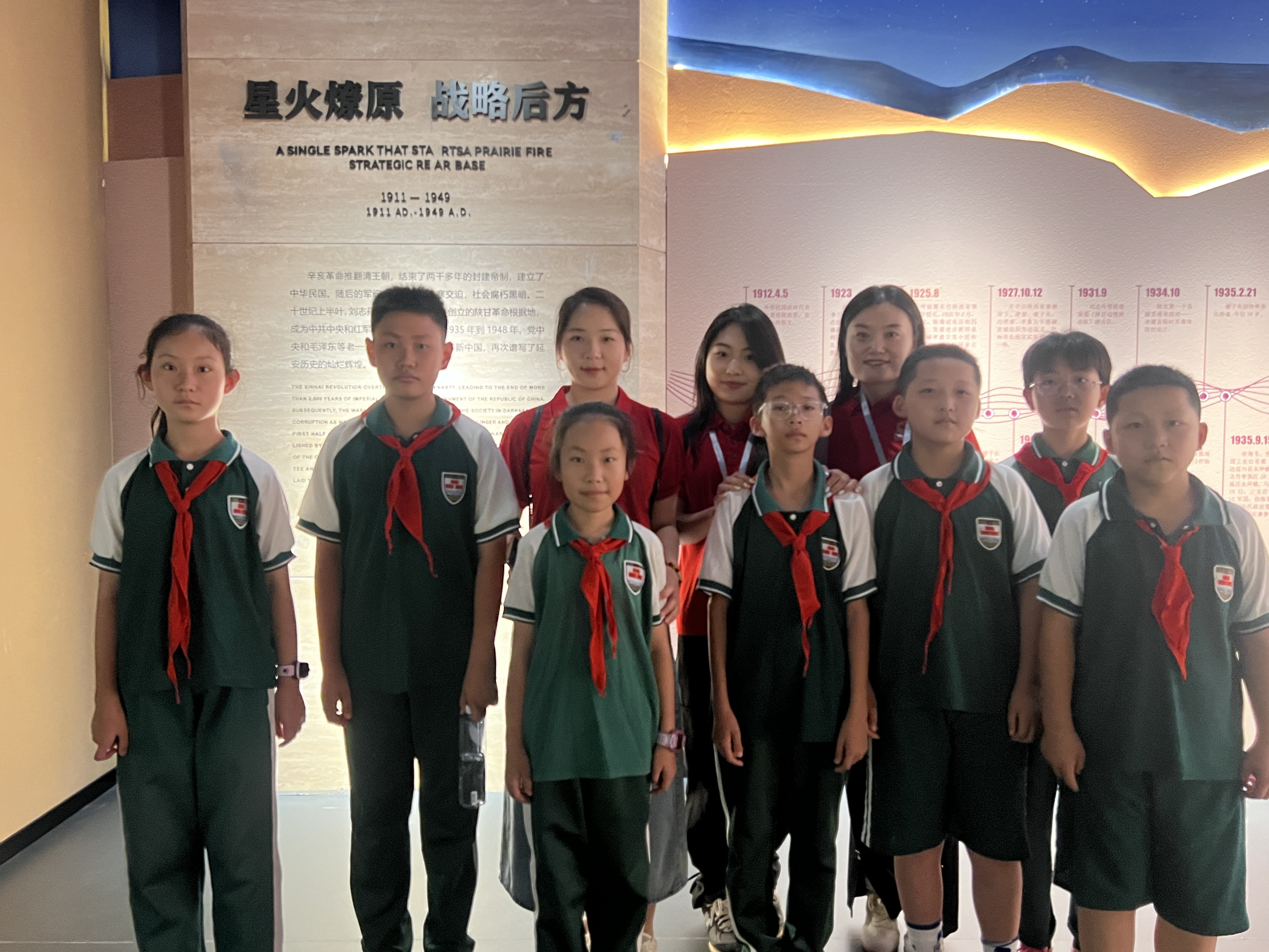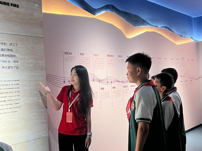 大手牵小手,共传文化情。在延安博物馆,实践团遇到了一批少先队员,成员们们用所见所闻亲切热情地为小朋友介绍了展厅内的部分文物,“大朋友”和“小朋友”面对面交流互动,在畅所欲言中共同学习。其中一位“红领巾”说道:“通过哥哥姐姐们的讲解,我对延安的历史人物和历史事件有了更深刻的认识,我将从红色精神中汲取前进力量,感党恩、听党话、跟党走。”