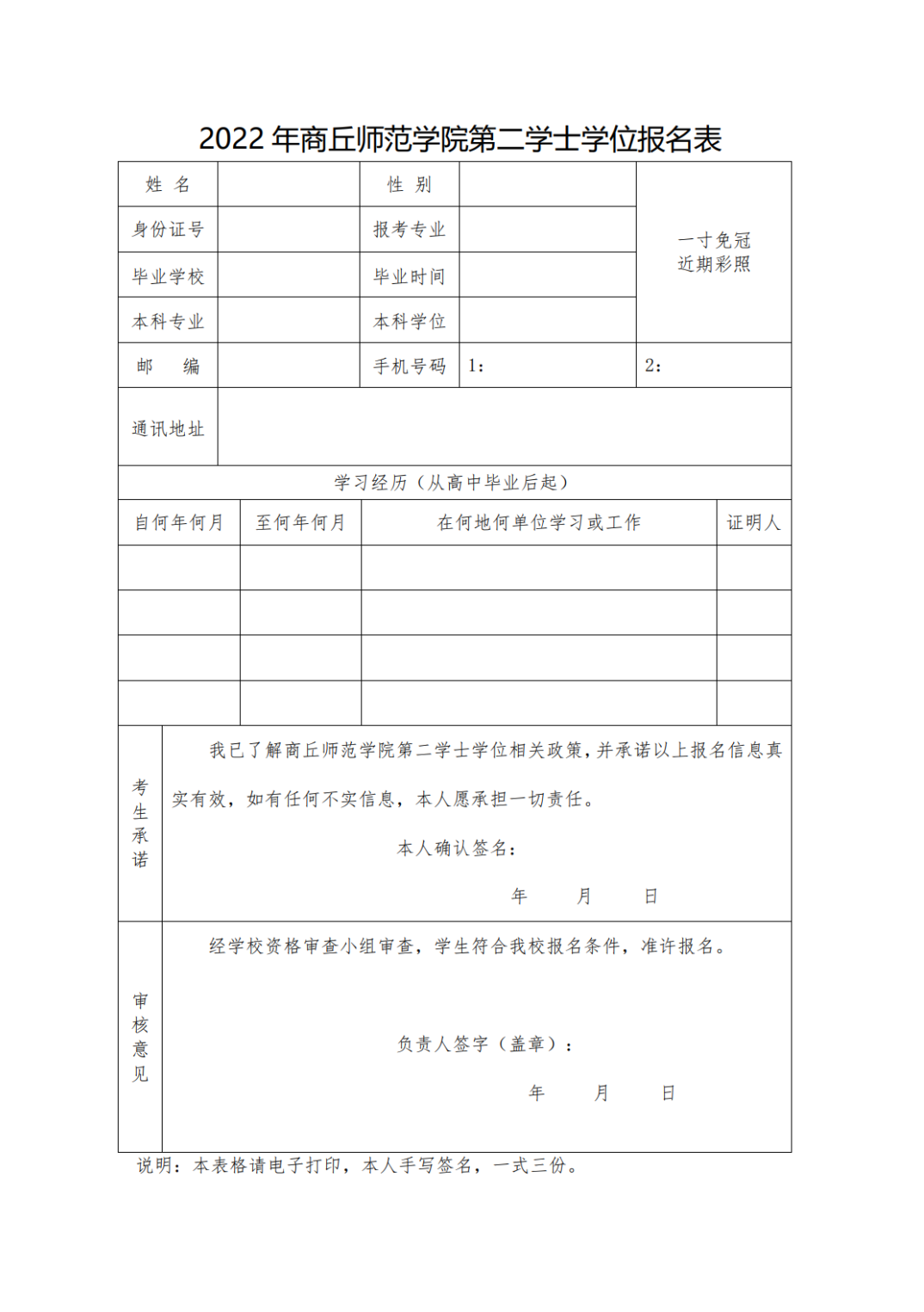1.《2022年商丘师范学院第二学位报名表》;