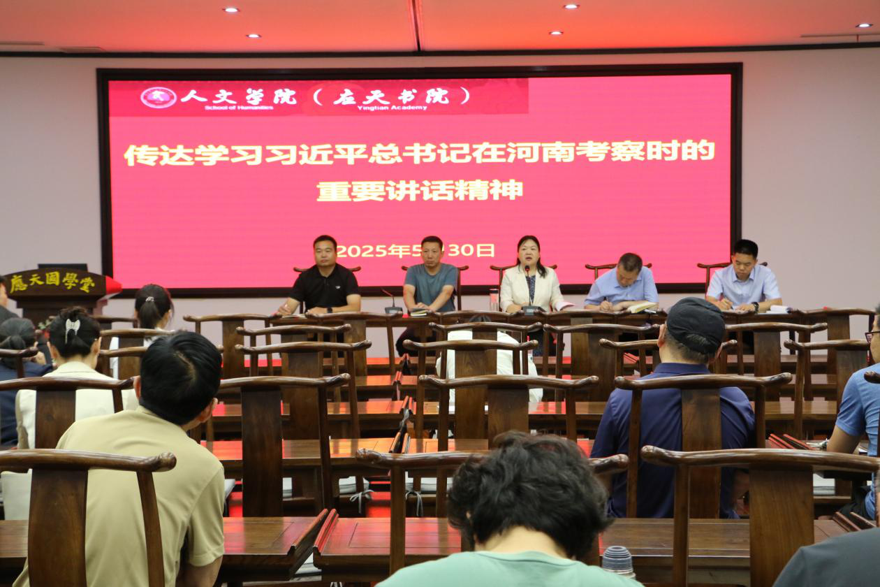 会上,陈晓明带领全体教职工深入学习了习近平总书记在河南考察时的重要指示。她强调,全体教职工要以高度的政治自觉、思想自觉、行动自觉,学习好、领会好、贯彻好习近平总书记重要讲话精神,立足学院实际,将讲话精神转化为推动教学科研与文化传承创新的实际行动,为中原大地现代化建设贡献人文力量。