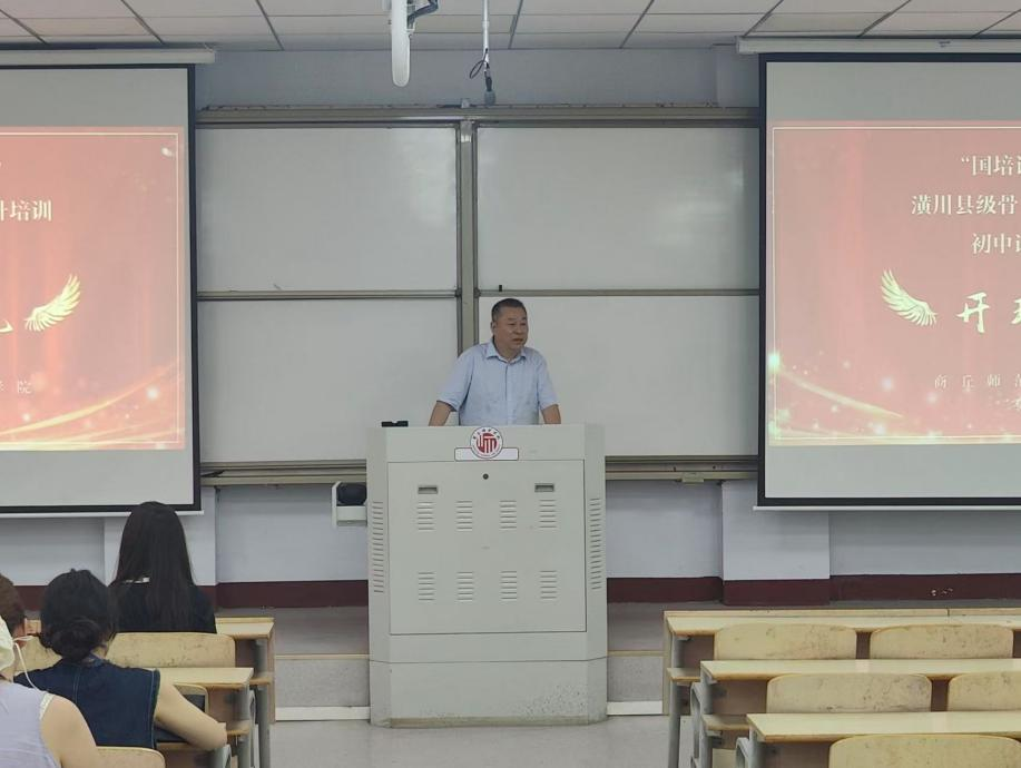2025年8月1日下午,由商丘师范学院国产欧美一区二区承办的“国培计划(2025)”潢川县级优秀中青年骨干教师培育计划初中、小学语文班,在睢阳校区8号楼306教室正式开班。开班典礼由邹琨老师主持,来自信阳市潢川县的100名优秀中青年教师参加了此次开班仪式,首席专家冯志伟出席了典礼并致辞。