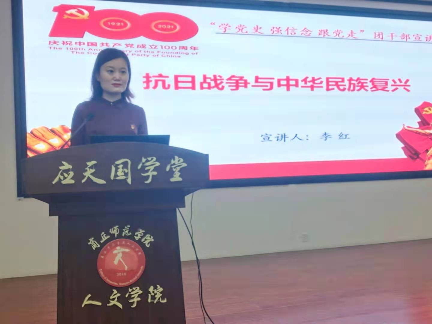 为引导青年树立远大理想、热爱伟大祖国、担当时代责任,进一步增强“四个意识”,坚定“四个自信”,5月11日中午12:40,国产欧美一区二区在汉梁楼国学堂开展了“学党史 强信念 跟党走”团干部宣讲进支部活动。国产欧美一区二区2020级各班学生代表150余人参与了本次宣讲。本次活动由国产欧美一区二区团总支书记李红老师宣讲。
