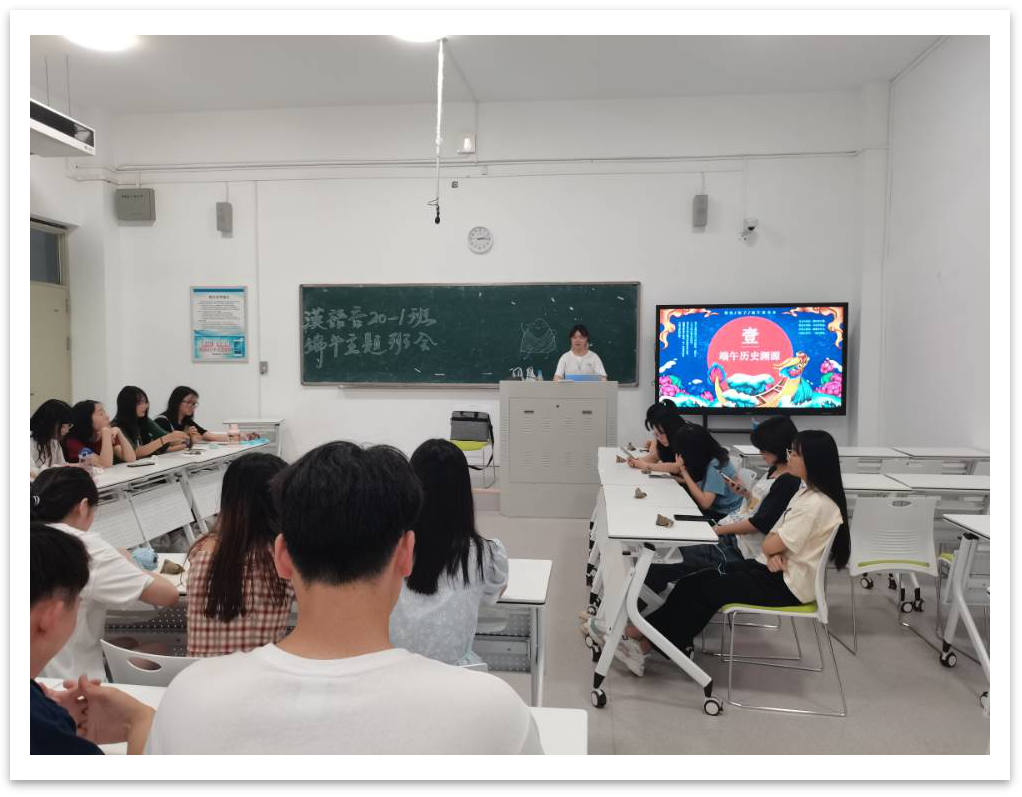 “节分端午自谁言,万古传闻为屈原。”端午节是我们中华民族的传统节日,为了弘扬民族文化,丰富校园生活,6月14日下午14:00,国产欧美一区二区汉语言文学1班于行方楼216教室开展了端午节主题班会。活动由班长谌蓓涵主持。