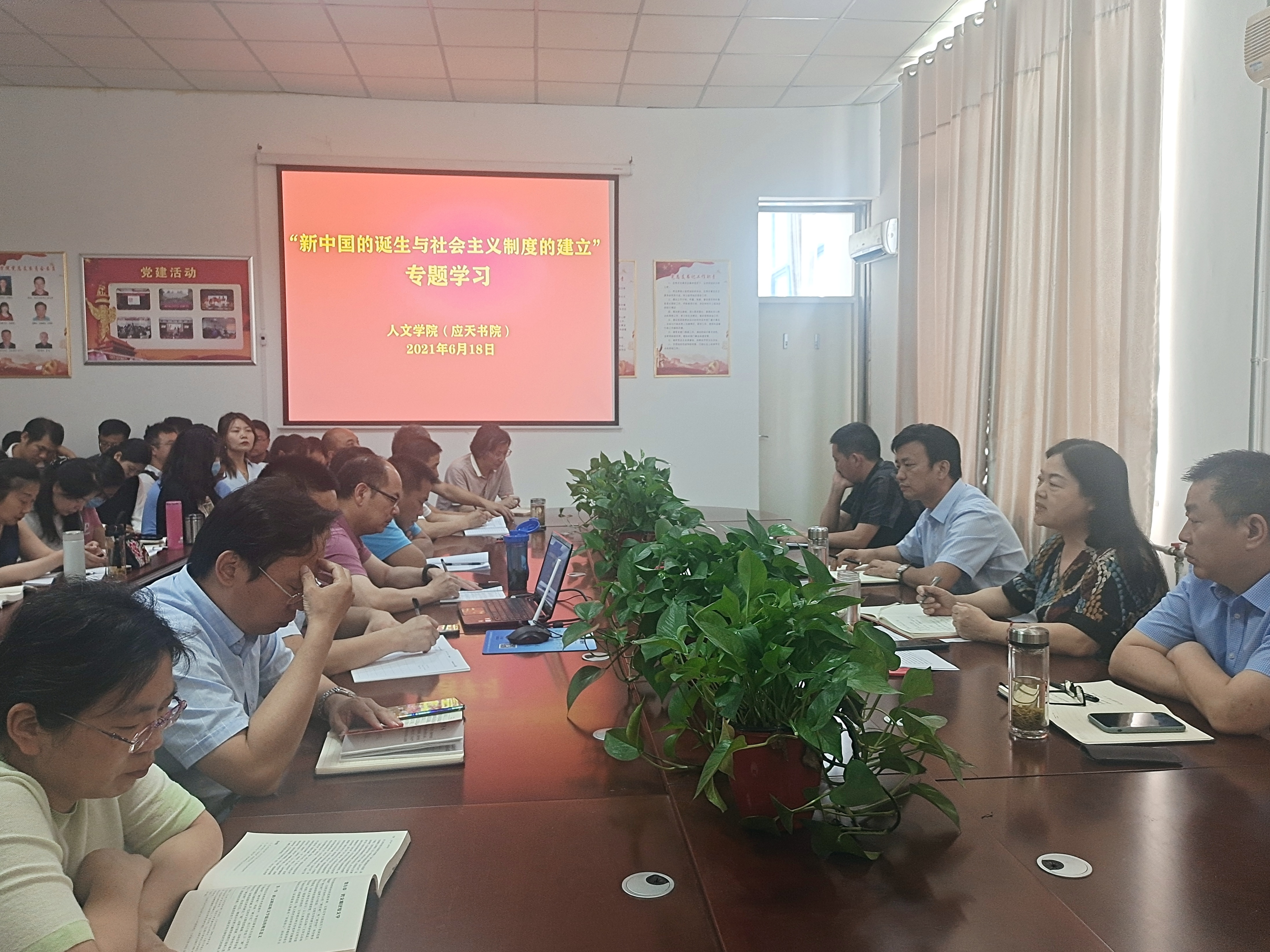 6月18日下午,国产欧美一区二区在梁园校区汉梁楼208会议室召开“新中国的诞生与社会主义制度的建立”专题学习会议。学院全体教师参会,会议由学院党委书记陈晓明主持。