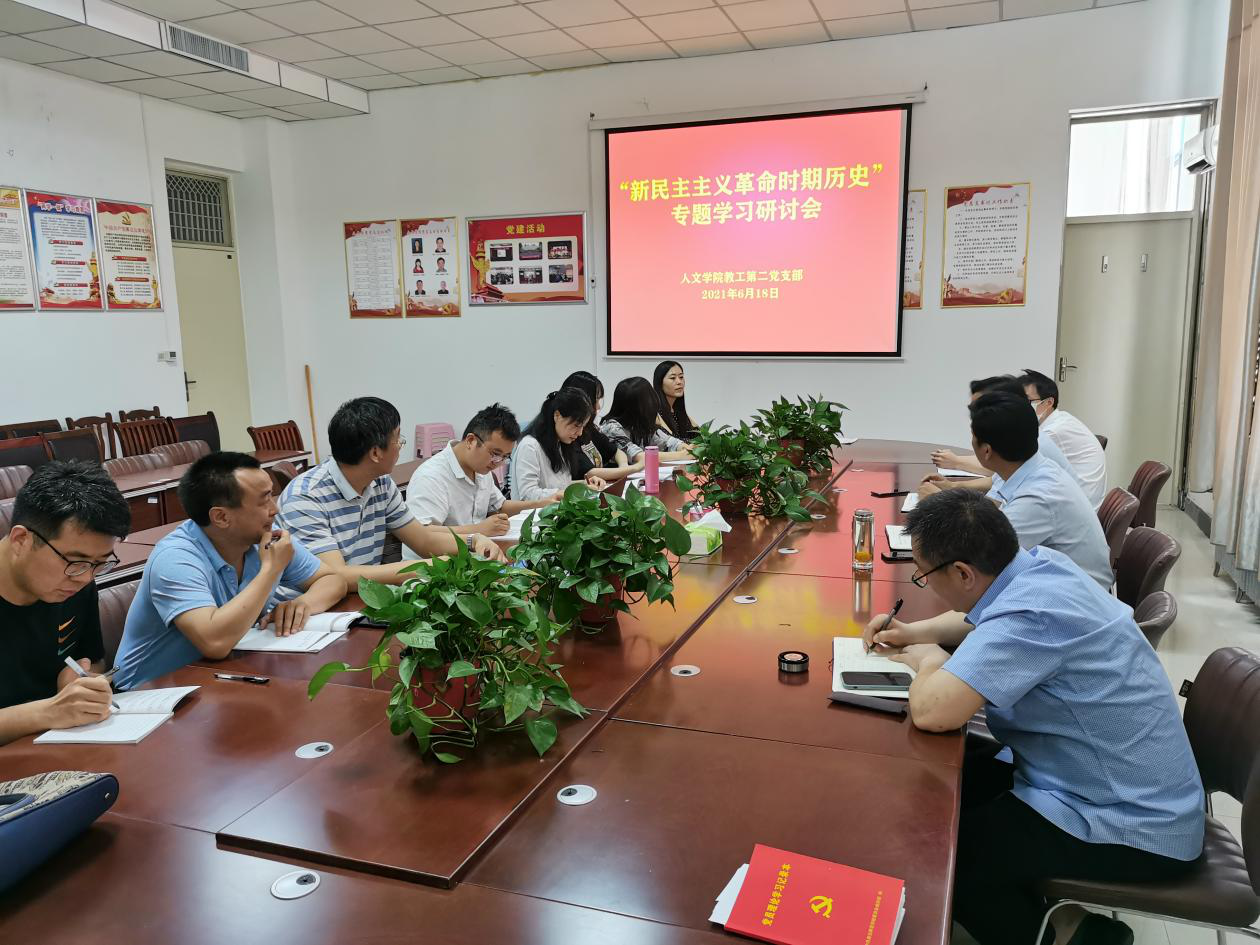6月18日下午,国产欧美一区二区教师第二党支部全体党员教师在梁园校区汉梁楼208会议室开展“新民主主义革命时期历史”主题学习研讨会,会议由支部书记付先召老师主持。