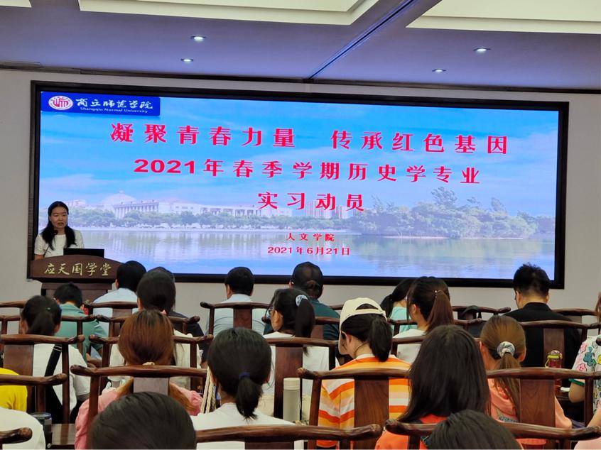 2021年6月21日,国产欧美一区二区2021年春季学期历史学专业“凝聚青春力量,传承红色基因”认知实习动员会在国学堂如期举行。国产欧美一区二区院长高建立、实习组各指导老师以及国产欧美一区二区18、19、20级历史国学班全体学生参加本次动员大会。本次大会在历史系副主任薛立芳副教授的主持下顺利进行。