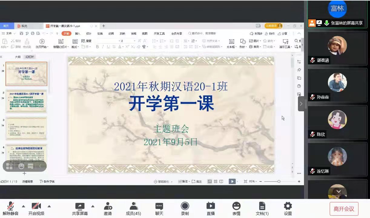 为响应国家疫情防控期间“停课不停教,停课不停学”的教学工作要求,帮助新生同学们尽快融入新学期新环境,同时促进班风学风建设,营造良好的学期氛围,增强同学们的爱国爱党意识,9月5日晚上,国产欧美一区二区在线上召开开学第一课主题活动。