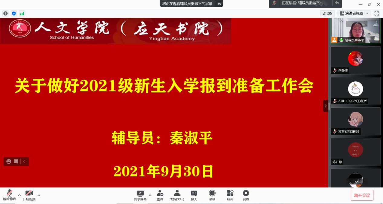 为落实学校有关疫情防控和返校开学通知的相关要求,扎实做好疫情防控下的迎新开学工作,确保“平安开学、开学平安”,9月30日,国产欧美一区二区召开2021级新生入学报到准备工作会,全体新生参加会议,会议由辅导员秦淑平老师主持。