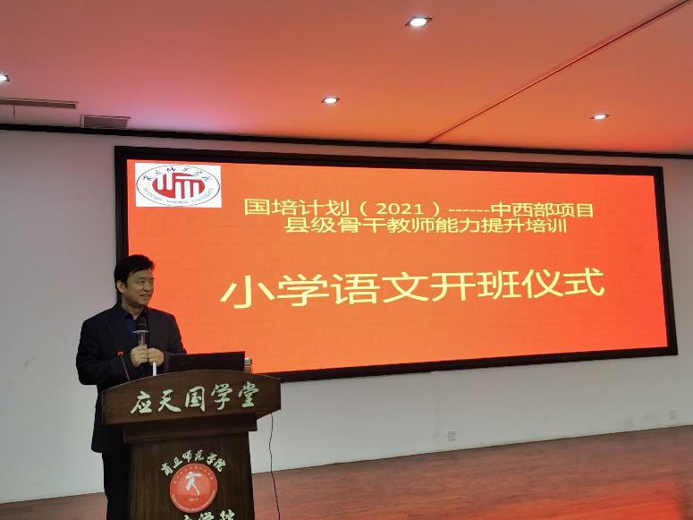 10月9日上午,国培计划(2021)——小学语文班开班仪式在梁园校区汉梁楼国学堂启动,参与人员有语文项目首席专家、班主任以及来报到的所有国培项目县级骨干学员。