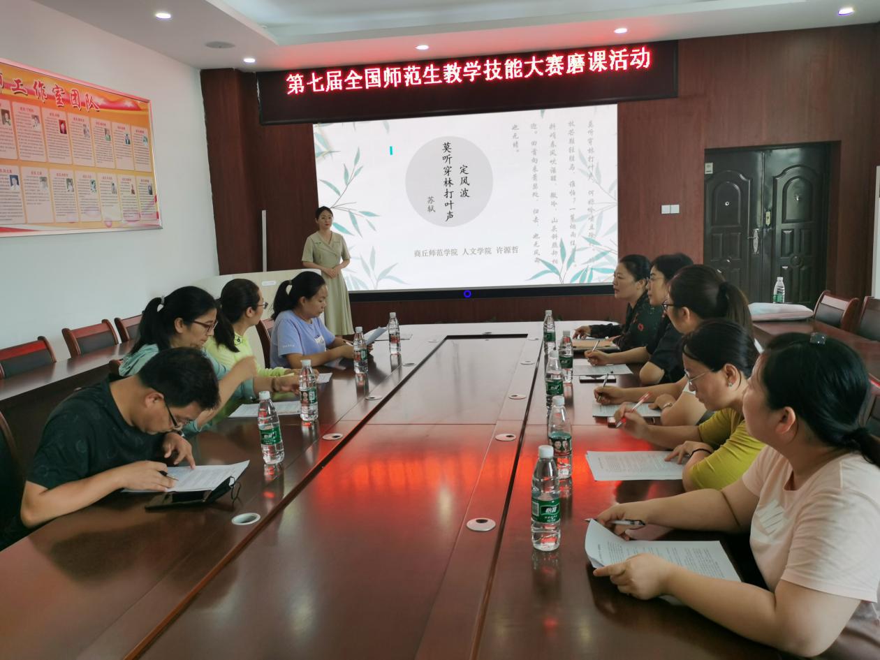 10月4日下午3点,国产欧美一区二区特邀商丘市第一高级中学竟霞名师工作室一起进行了“田家炳杯”第七届全国师范院校师范生教学技能竞赛磨课活动。国产欧美一区二区2018级汉语言文学专业学生许源哲作为参加此次大赛的选手进行《定风波》说课和微课展示,国产欧美一区二区教师邹琨及竟霞名师工作室全体成员参与了此次活动。