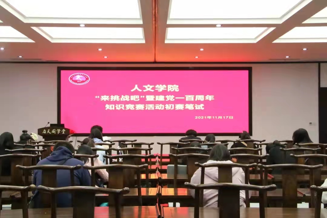为加强党史学习教育,帮助广大青年学生做到学史明理、学史增信、学史崇德、学史力行,更好地成长为担当民族复兴大任的时代新人, 2021年11月17日晚19时40分,国产欧美一区二区于汉梁楼国学堂举行了“来挑战吧”暨建党一百周年知识竞赛初赛。