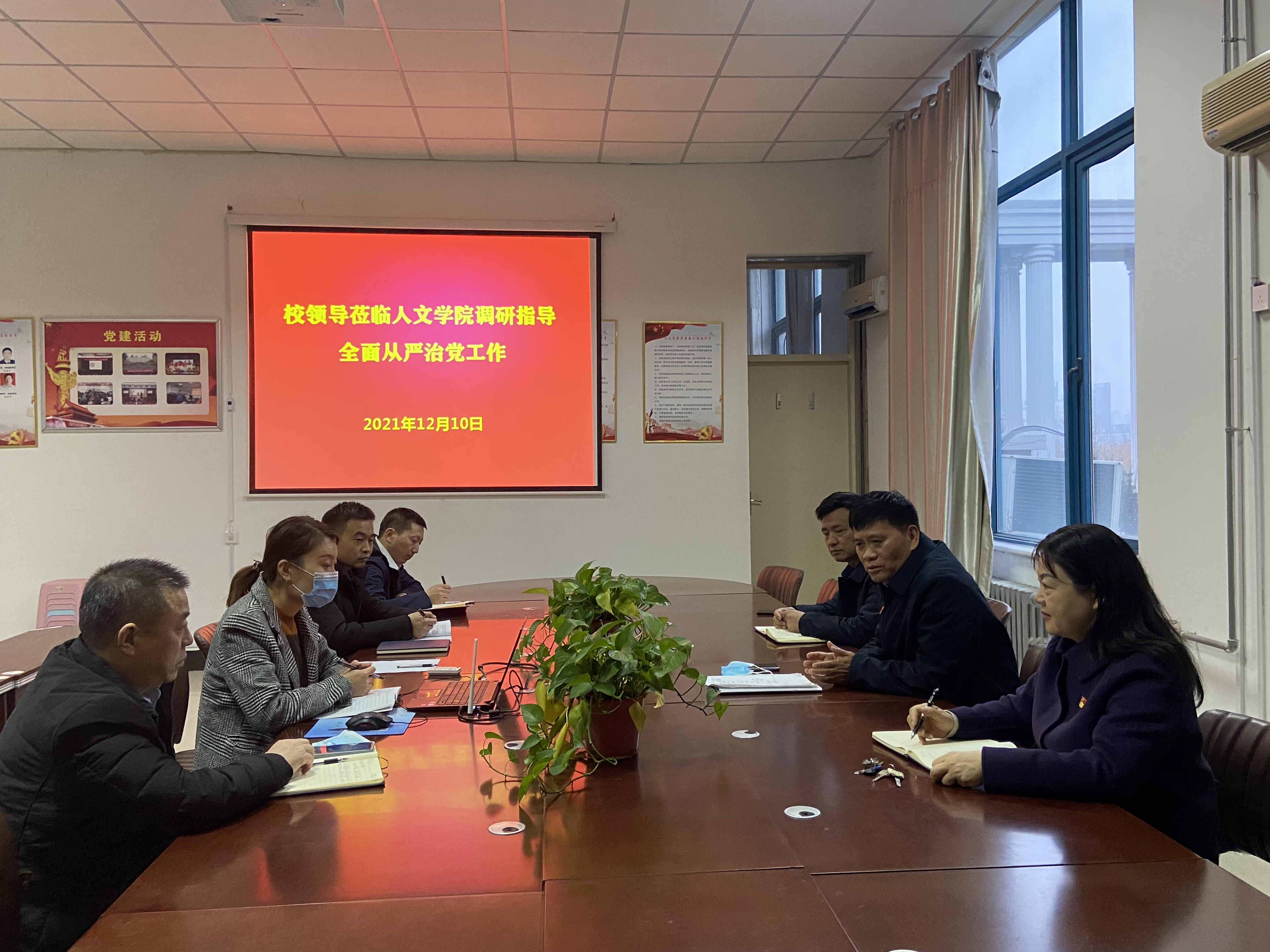 吴金山强调指出,这次全面从严治党检查指导,是根据省委高校工委纪工委和学校党委、纪委的要求进行的,也是一个常规性动作。每到重要时间节点,各级领导干部都要到分管单位开展调研指导和检查监督动,主要是看看我们学院领导班子全面从严治党工作的落实情况,意在警钟长鸣、防微杜渐。作为商丘师范学院二级学院的领导班子,对于全面从严治党工作,着重强调如下几点:一要把准悟透全面从严治党执纪越往后越严的大势。党的十八大以来,以习近平同志为核心的党中央,以雷霆万钧之势,铁腕反腐,坚持老虎苍蝇一起打,反腐败斗争取得了压倒性胜利。从今年这个建党百年的特殊年份,中央“打虎”的力度依然十分强劲有力。这些,大家都亲身经历,感同身受。全面从严治党永远在路上。我们要切实增强责任感使命感,把思想认识统一到习近平总书记关于全面从严治党的重要讲话上来,统一到省委、省纪委的安排部署上来,深入开展行之有效的活动,营造良好的政治生态。二要始终坚持旗帜鲜明讲政治。习近平同志站在战略和全局的高度,系统回答了新时代领导干部为什么要讲政治、讲什么样的政治、怎样讲政治等重大问题,创造性地提出了一系列新思想新观点新论断。我们所讲的政治决不是空的,而是具体的。要把准政治方向,坚持政治领导,站稳政治立场,严守政治纪律,加强政治历练,提高政治能力,强化政治担当,做时代的劲草、真金。要体现在增强“四个意识”、坚定“四个自信”,落实“两个维护”,在思想上政治上行动上同以习近平同志为核心的党中央保持高度一致。三要锲而不舍贯彻执行中央八项规定精神。作风如水,流淌在人的日常言行里。作风体现着人品人格,作风展示着形象,作风体现着风格风采。人做好了,什么都可能做好;人没做好,什么都不会做好。中央八项规定精神为我们党员干部尤其是党员领导干部的言行做出了明确规定,提供了基本遵循。我们要把中央八项规定精神及实施细则和省委、省委高校工委及校党委、校纪委的落实意见,镌刻在脑中,担负在肩上、落到行动中。四是坚决当好廉洁自律的表率。要常修为政之德,常怀律己之心,常怀敬畏之心,严格要求,时刻保持警醒,丝毫不敢懈怠。要多想一想利害,率先垂范,标准更高一些,要求更严一些,做到敬小慎微、洁身自好。要以建设高水平应用型大学为目标,落实立德树人的根本任务,锚定我们学校的重点事项、重点工作、重点项目,久久为功、善作善成,八小时之外坚持做,不断把我们的事业推向前进。