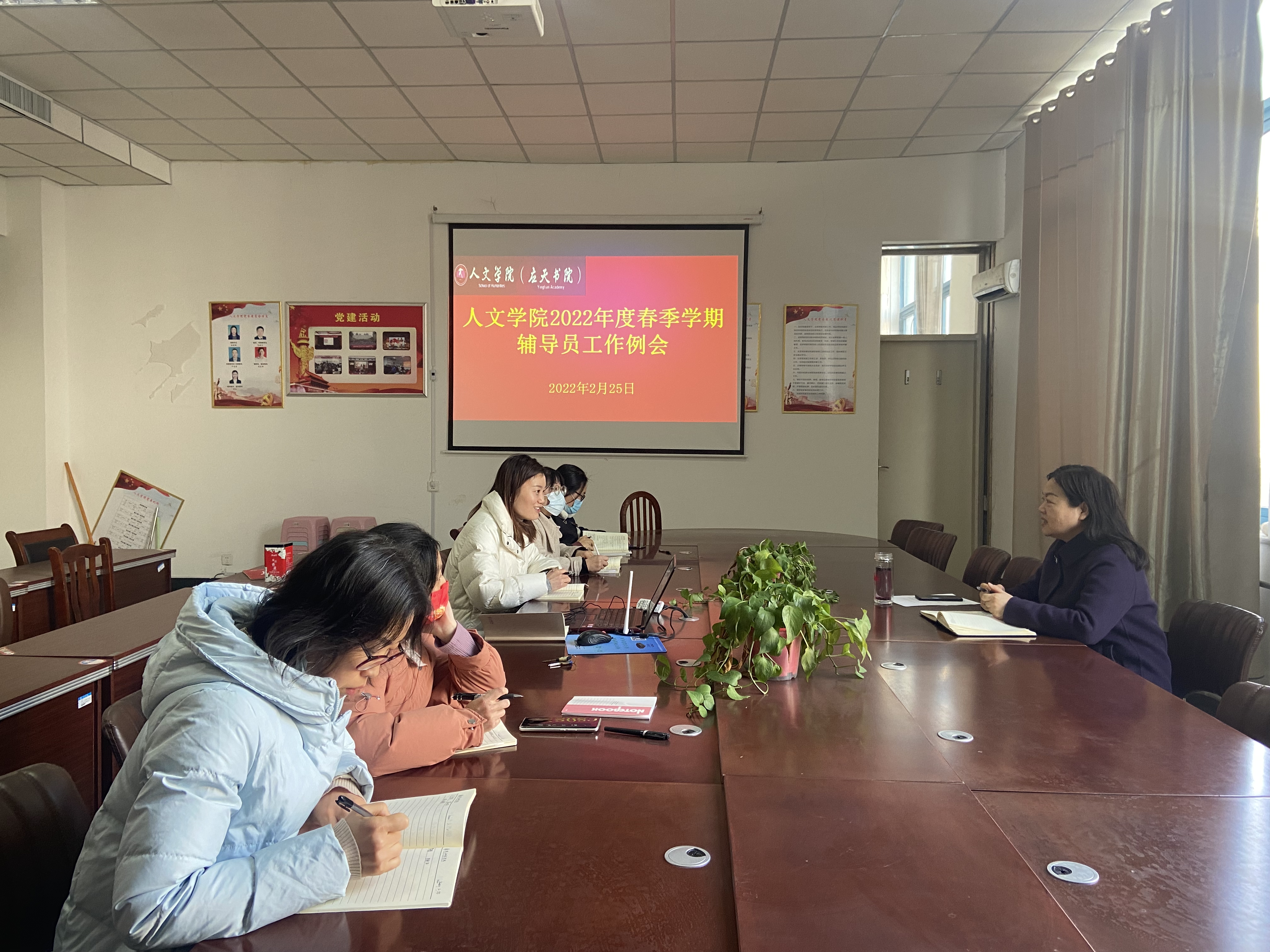 为切实做好新学期学生管理工作,2月25日上午,国产欧美一区二区在汉梁楼208会议室召开2022年度春季学期辅导员工作例会。学院党委书记陈晓明和全体辅导员参加会议,会议由陈晓明主持。