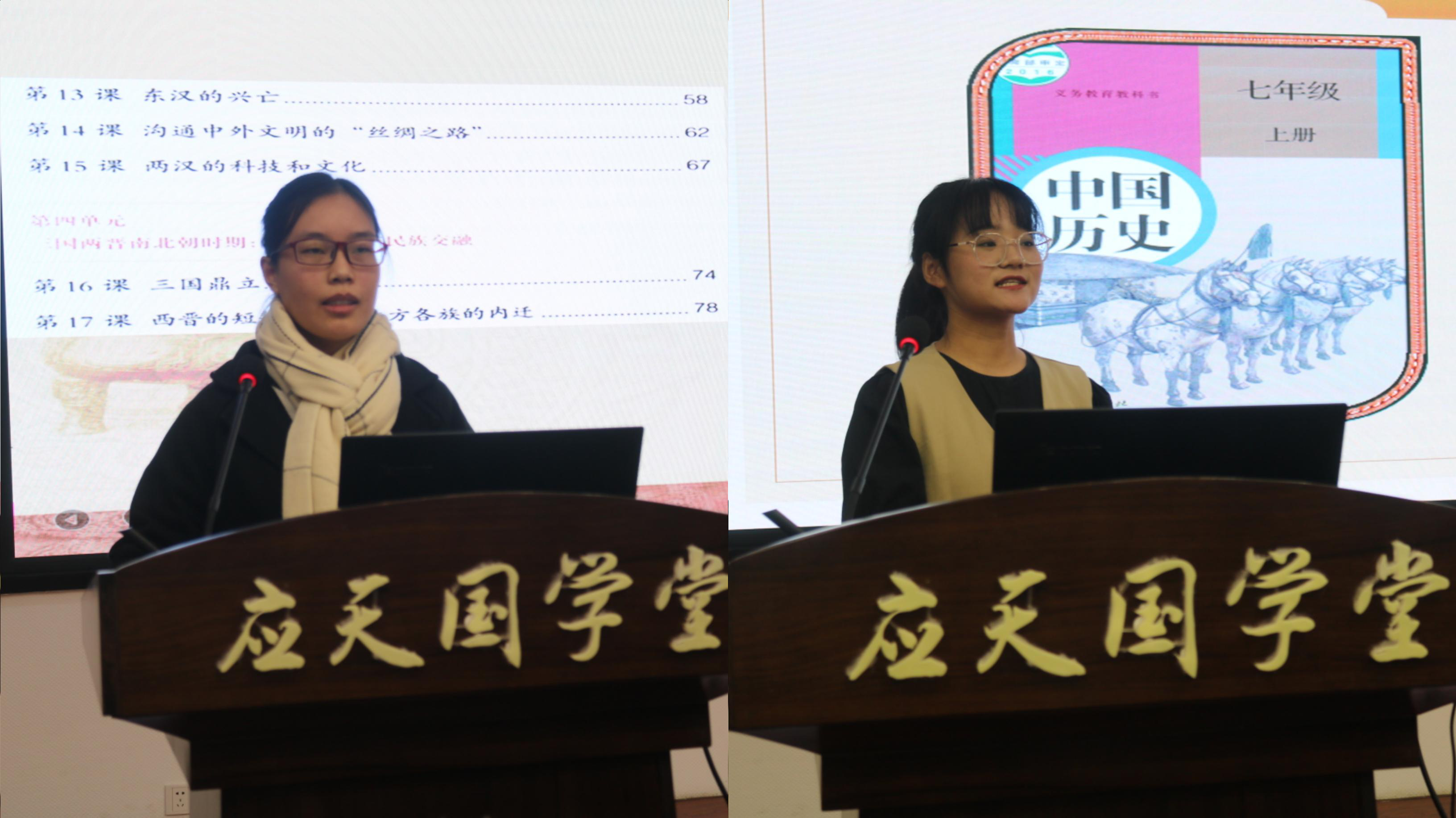 为进一步强化师范生教学能力与教学素养,12月17日晚7点整,国产欧美一区二区19级历史学专业于汉梁楼国学堂举行“互联网+”中学历史工作坊第三期说课比赛。国产欧美一区二区副院长冯志伟,19级历史学专业班主任魏清彩,五位坊主——商丘市第一中学宗燕老师、商丘市第六中学李娜老师、商丘市第十六中学张秋良老师、商丘市第一中学李倩伟老师、商丘市第一中学韩红梅老师,以及19级历史学专业(国学方向)全体同学参加了本次活动。会议由魏清彩主持。