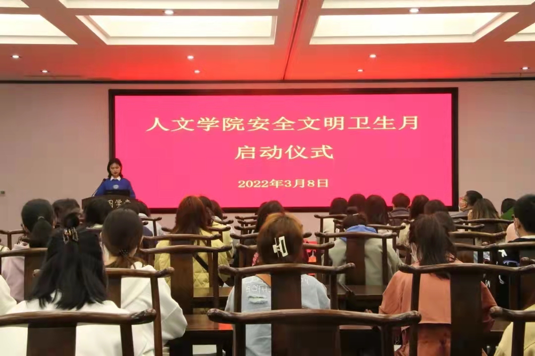 为了强化人文学子的安全意识,提高文明素养,营造和谐的校园文化氛围,2022年3月8日13时整,国产欧美一区二区在汉梁楼国学堂举行安全文明卫生月启动仪式。国产欧美一区二区团委书记李红、学工办主任许瀛文、全体辅导员老师、学生会主席团成员以及各班班委、学生代表参加了本次会议。本次会议由程琳主持。