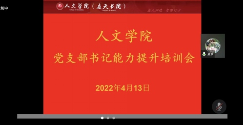 为充分发挥学院党支部在疫情防控、教育教学和学生管理工作中的战斗堡垒作用,4月13日晚八点,国产欧美一区二区举行线上党支部书记及政治辅导员培训会。学院全体党支部书记及政治辅导员参会,会议由学院党委书记陈晓明主持。