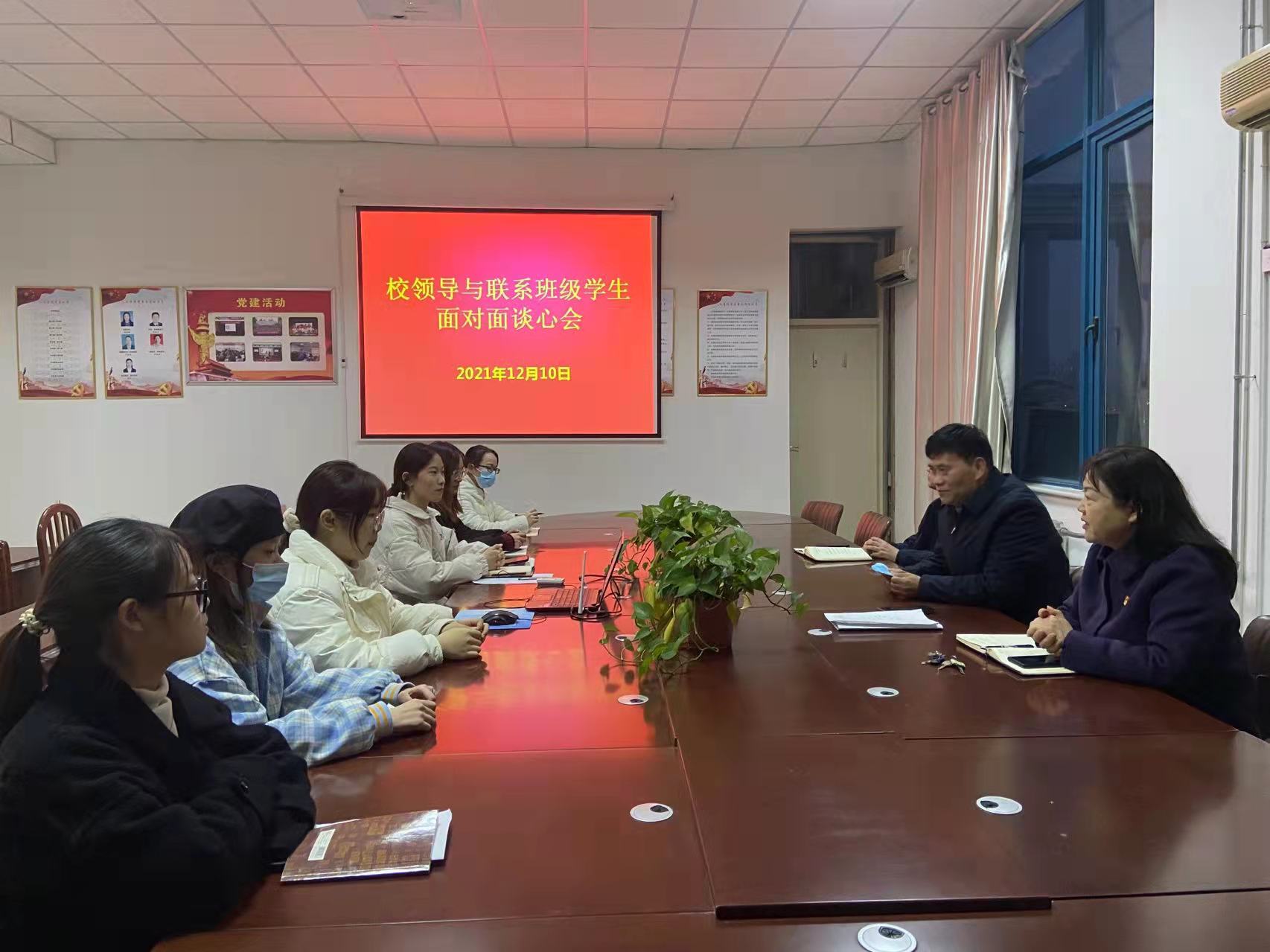 谈心会上,吴金山与参会学生代表进行了深入交流,了解学生学习生活中的问题。参会学生从班级建设、日常学习生活、校园文化活动以及对学校工作的意见和建议等方面畅所欲言,各抒己见。吴金山耐心细致的为同学们一一解答,并鼓励同学们坚定理想信念,紧跟社会发展和时代更新的步,成为新时代合格建设者和接班人。