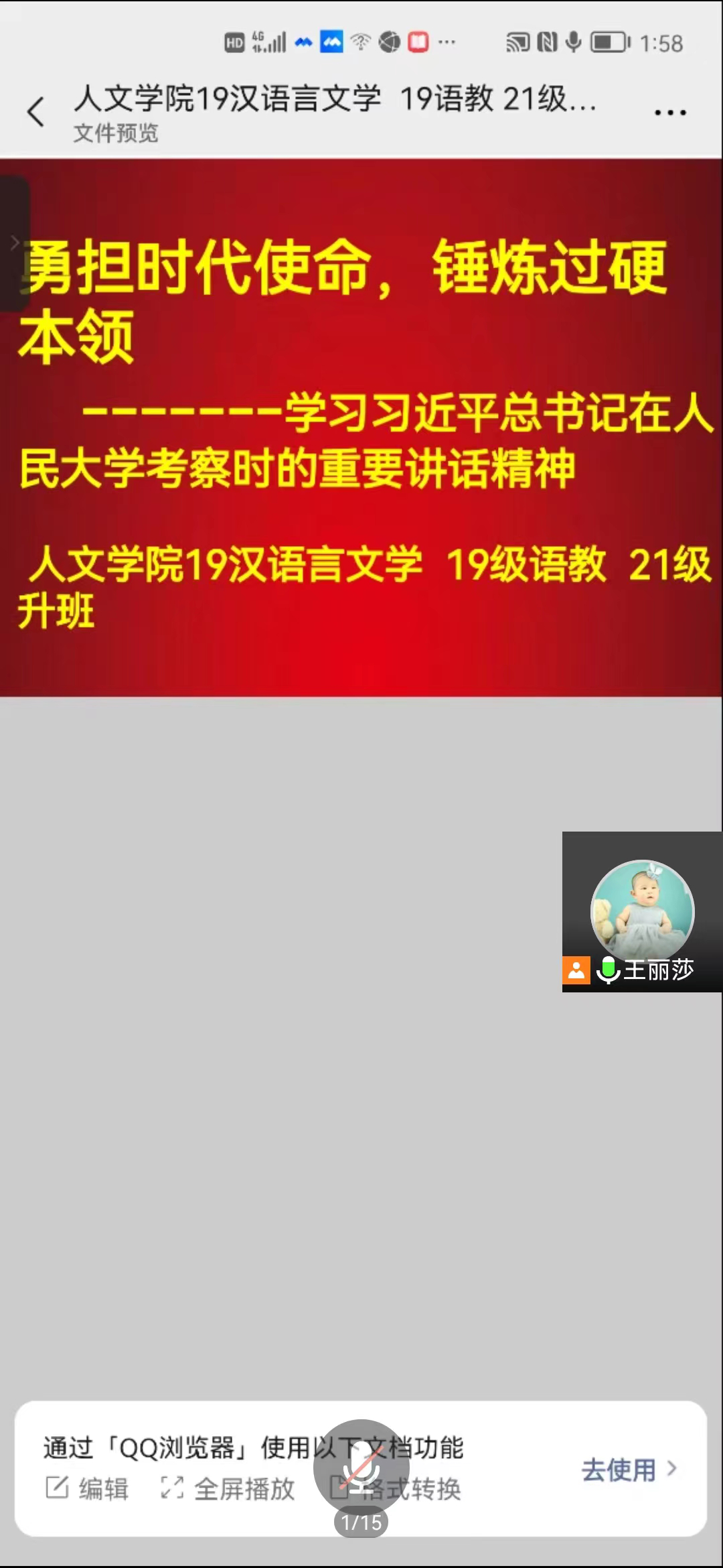 19级汉语言和语教专业辅导员王丽莎召开线上主题班会