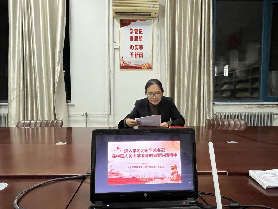 21汉语言和历史学专业辅导员乔明和秦淑平进行线上主题班会