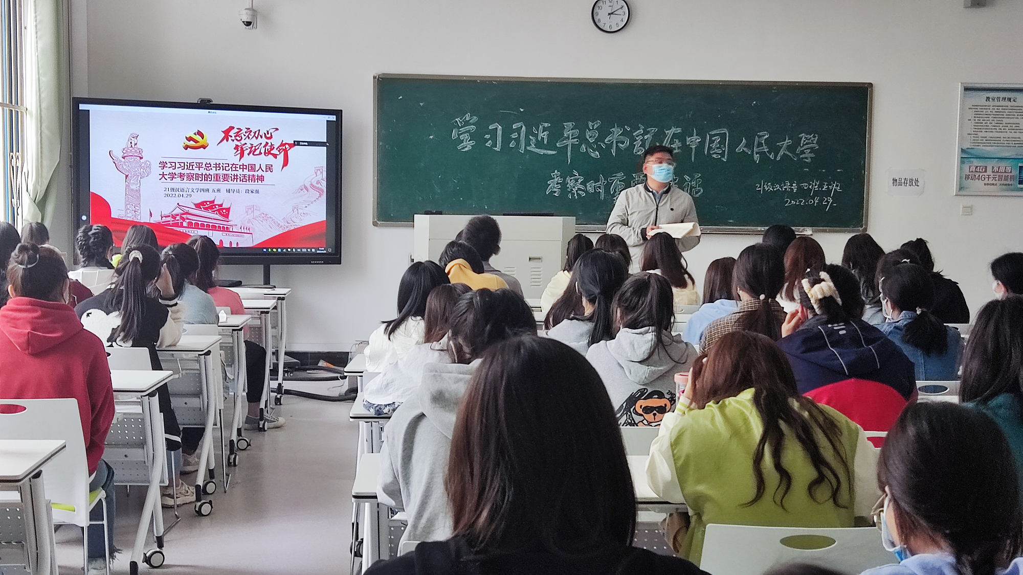 21级汉语言4、5班辅导员段家强在给学生开主题班会