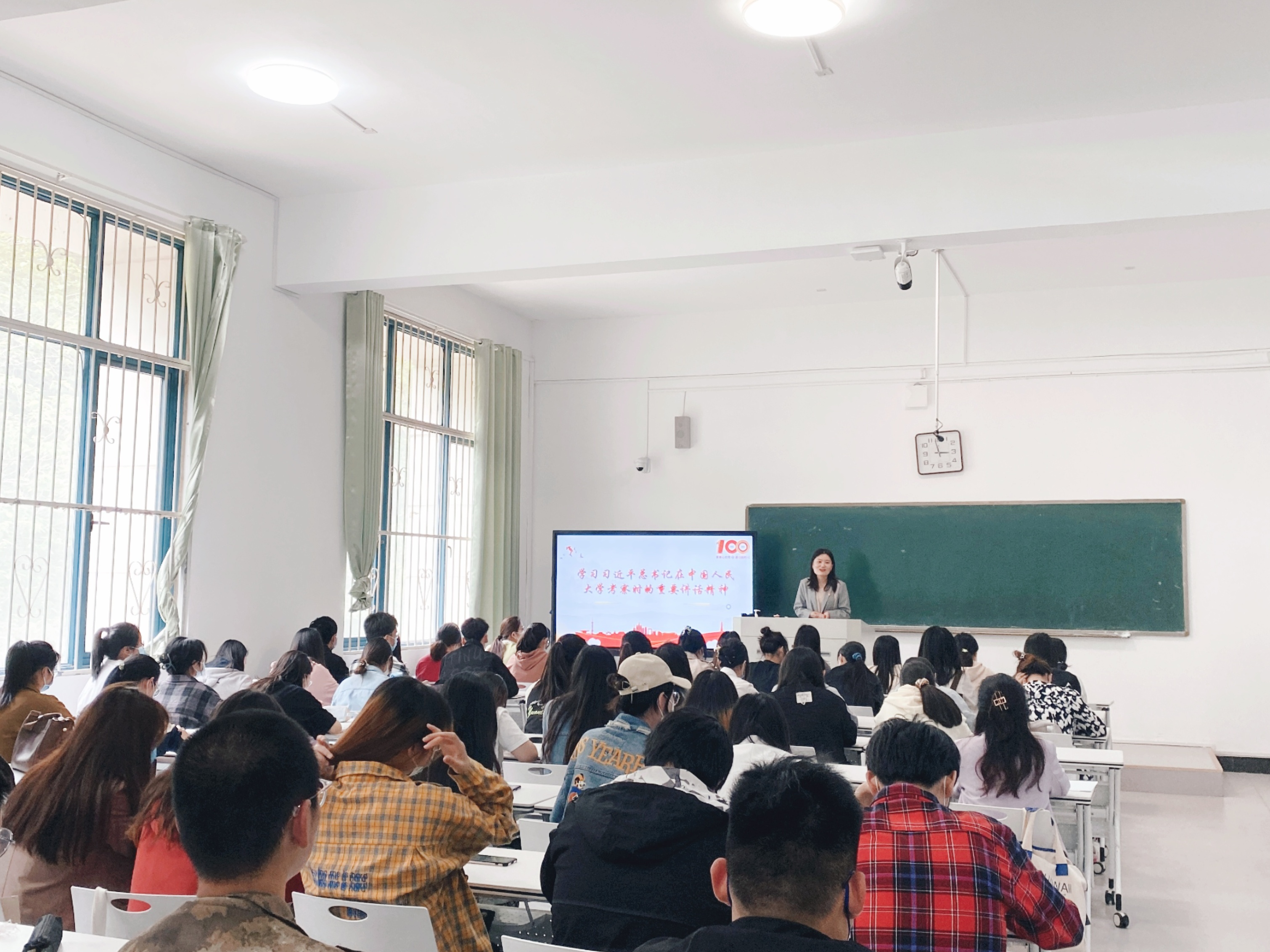 20级汉语言、秘书专业辅导员李红在给学生们开主题班会
