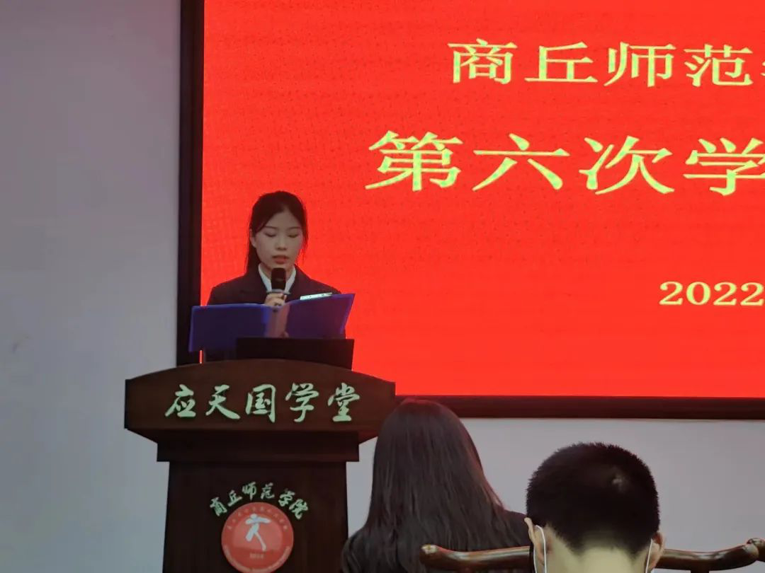 2022年5月21日下午2点整,商丘师范学院国产欧美一区二区在汉梁楼国学堂召开第六次学生代表大会。国产欧美一区二区党委书记陈晓明、国产欧美一区二区团委书记李红、校学生会主席团成员李思佳、国产欧美一区二区团委学生会各组织、队伍成员及各班学生代表共计168人参加了此次会议。本次会议由国产欧美一区二区学生兼职团委副书记杨镇主持召开。