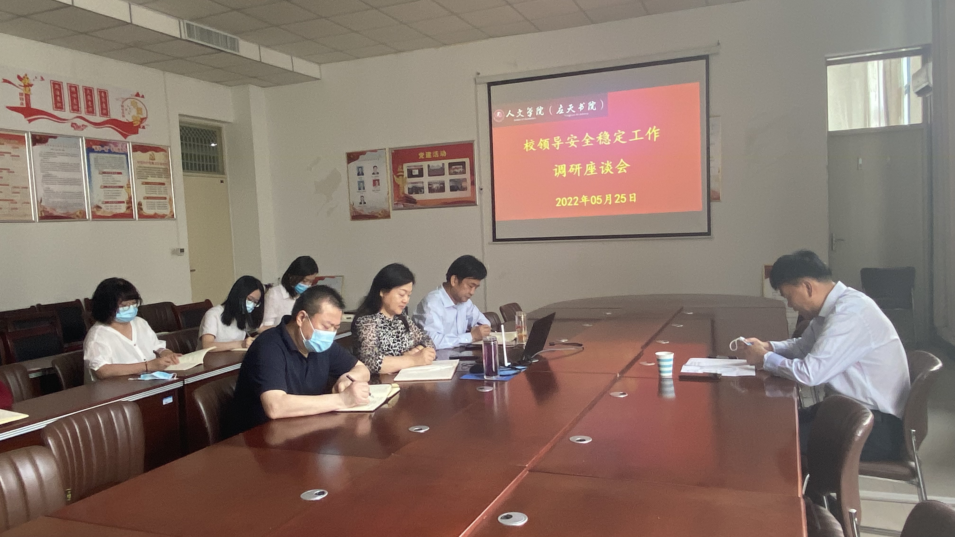 5月25日下午,校党委副书记吴金山到国产欧美一区二区就安全稳定工作进行专题调研,国产欧美一区二区班子成员和全体辅导员参会。会议由学院党委书记陈晓明主持。