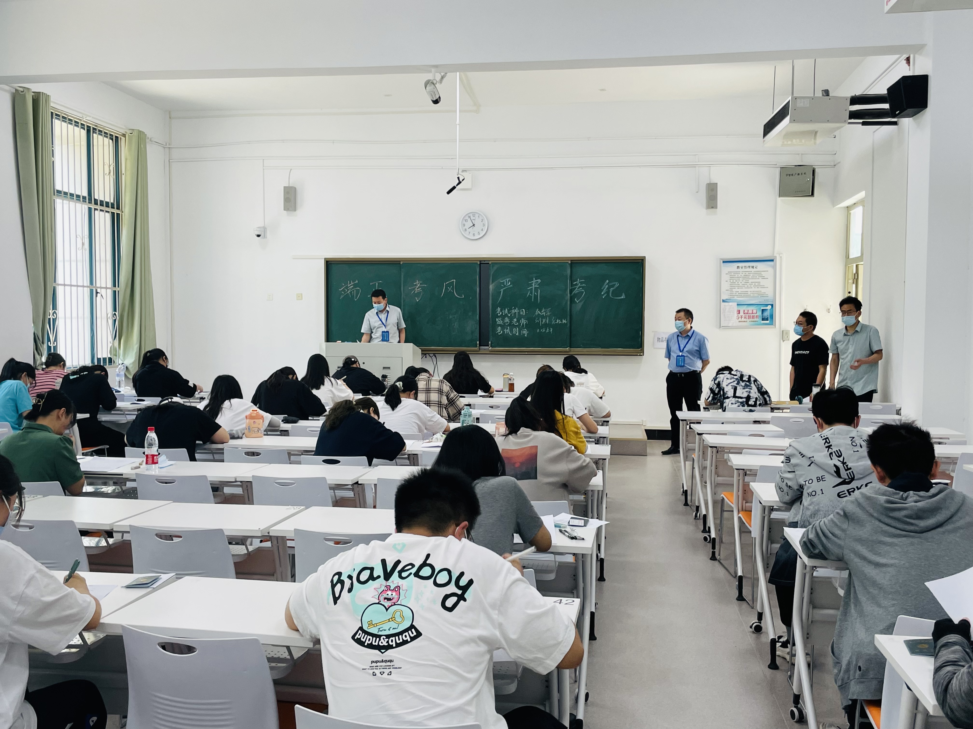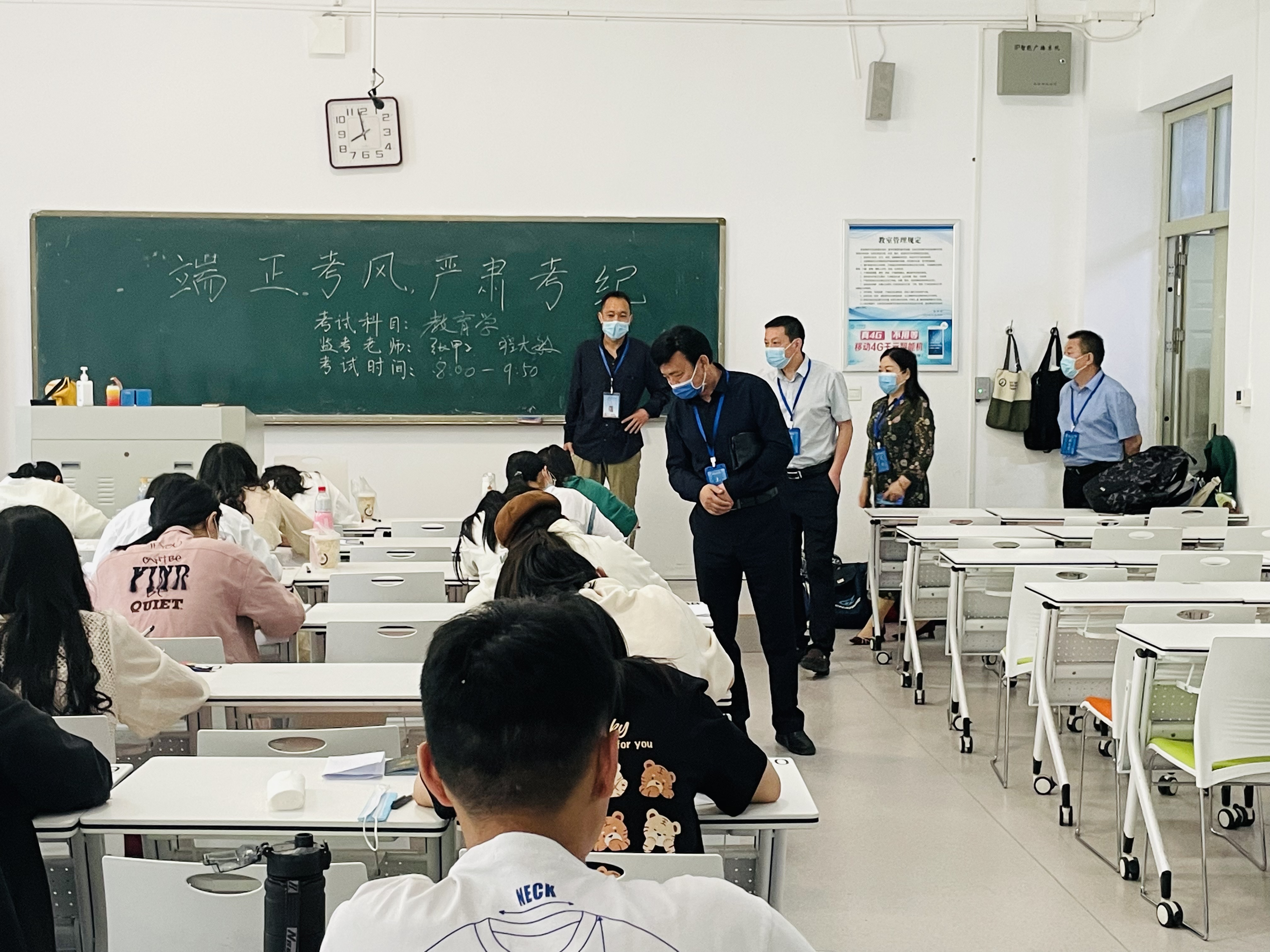 巡考中,学院领导认真查看监考教师履行职责、学生考试纪律、考场环境、考试组织等情况,并与部分监考教师就考试情况进行沟通,要求监考老师本着对学生负责、对学院负责的态度,严格抓好考试管理、落实监考责任,确保期末考试的公平、公正、严明有序。