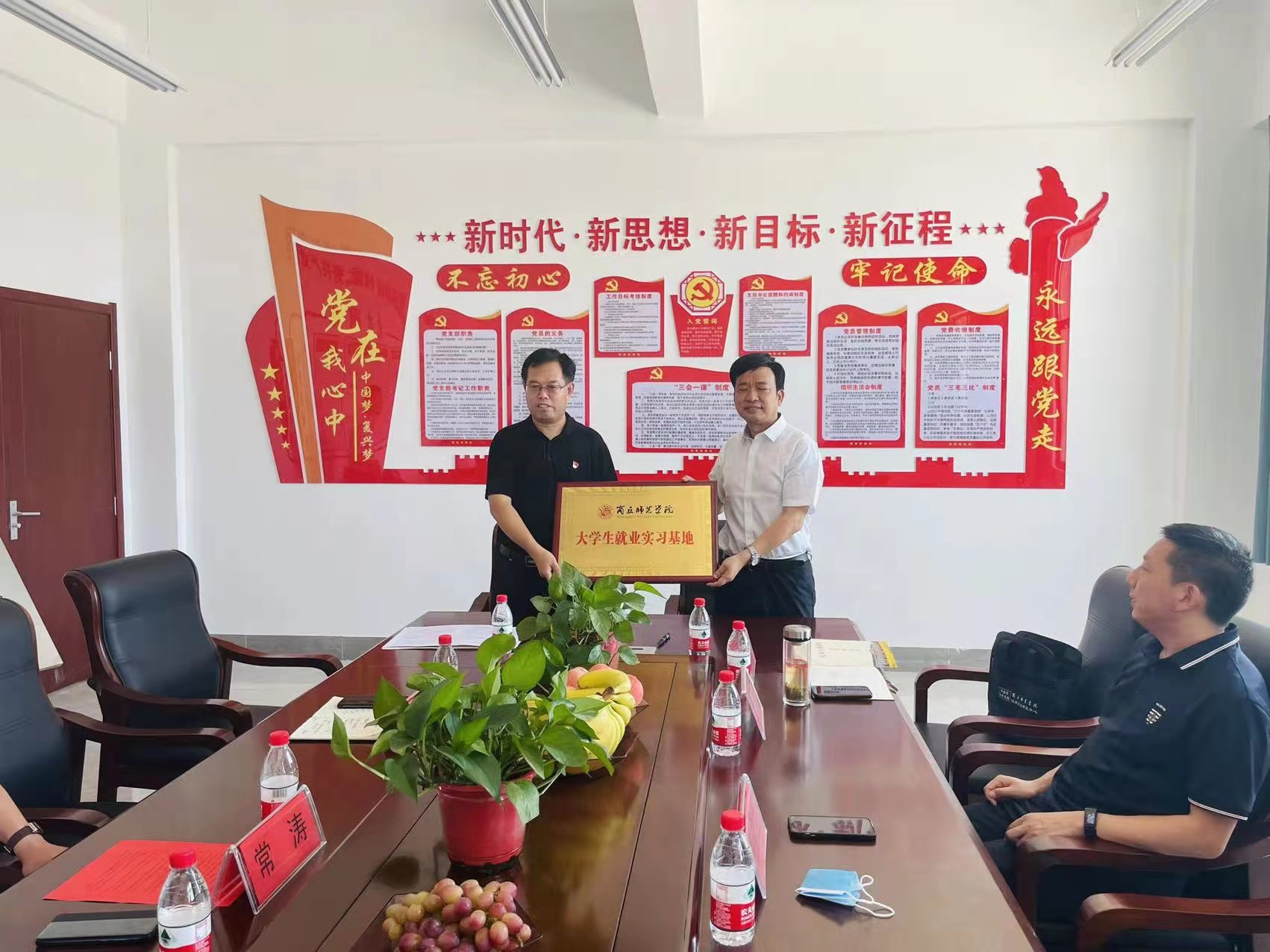 座谈会后,双方签署了商丘师范学院大学生就业实习基地协议书,举行了授牌仪式。常涛副局长和贾伟光校长陪同高建立院长一行参观了夏邑县第六中学的校园和教学设施。