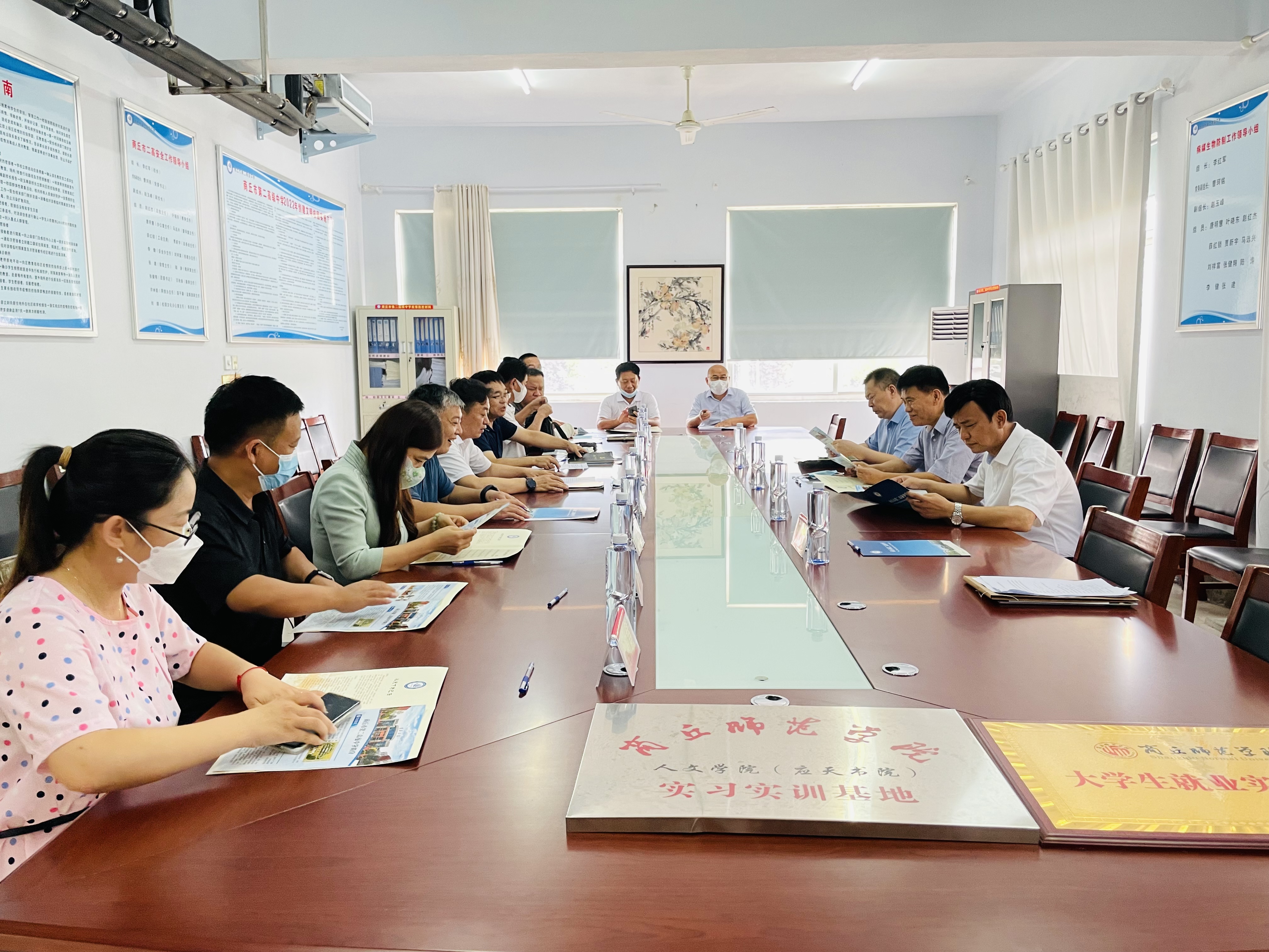 为进一步做好大学生就业与实习实训工作,7月26日上午,校党委副书记吴金山带领国产欧美一区二区部分班子成员到商丘市第二高级中学考察,参加商丘师范学院大学生就业实习基地和国产欧美一区二区实习实训基地签约授牌仪式。国产欧美一区二区院长高建立、副院长冯志伟,办公室人员孙今朝参加仪式。