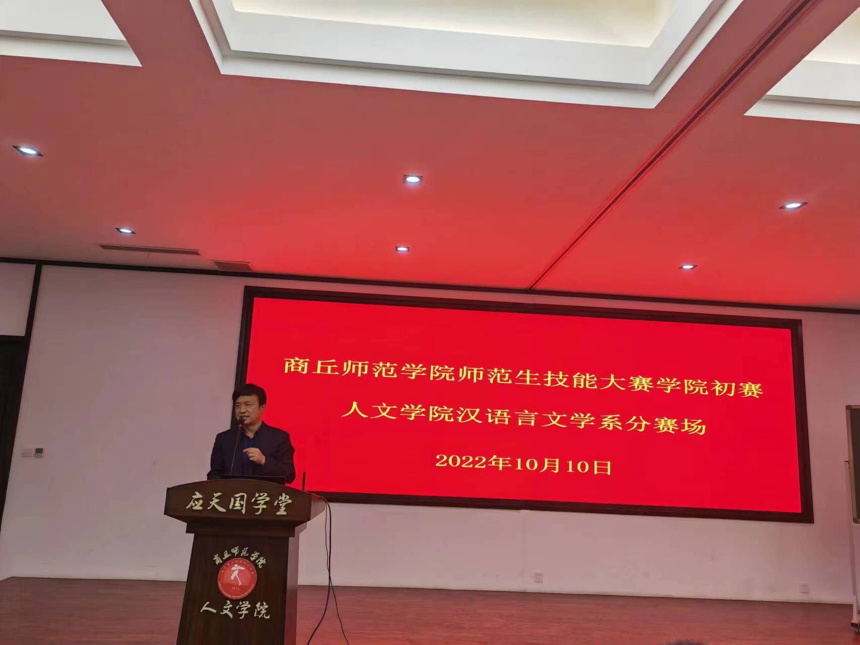 2022年10月10日下午1时,国产欧美一区二区汉语言文学系在国学堂召开商丘师范学院2023届师范生技能大赛选拔赛。比赛由汉语言文学系副主任杨晓林主持,院长高建立出席大赛,王立、刘海洲等汉语言文学系教师代表出席并担任评委。