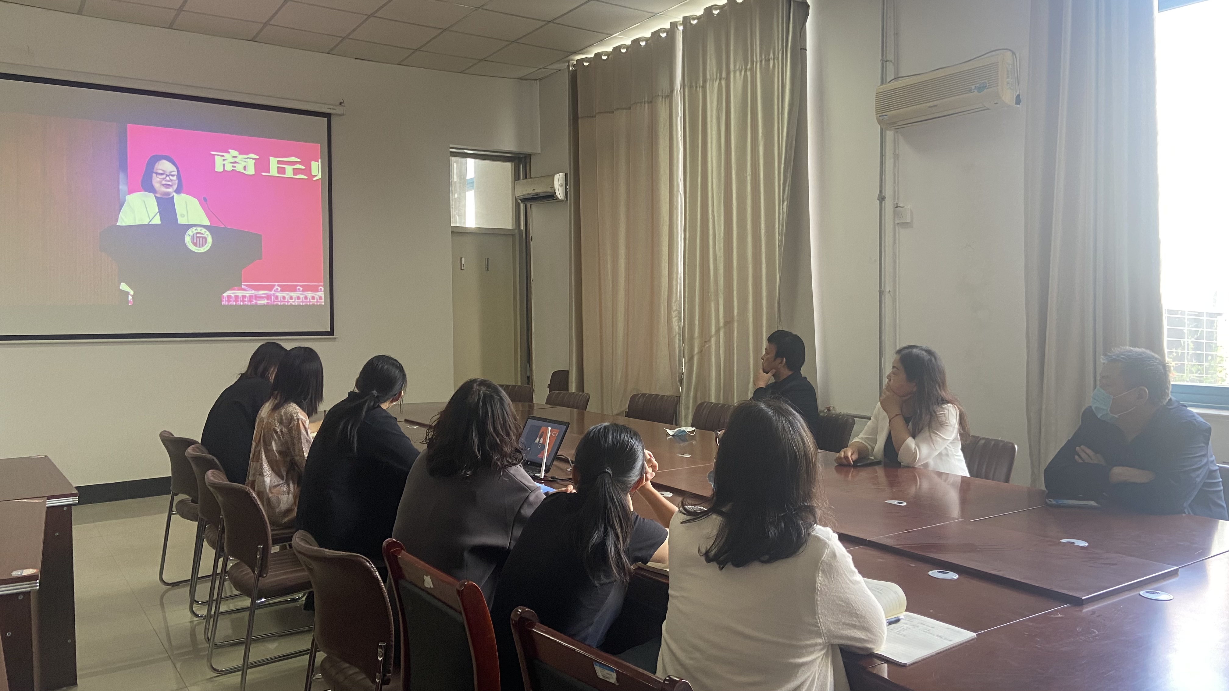 9月28日上午9点,商丘师范学院举办线上新生开学典礼,国产欧美一区二区组织师生在汉梁楼208分会场直播观看2022级新生开学典礼。